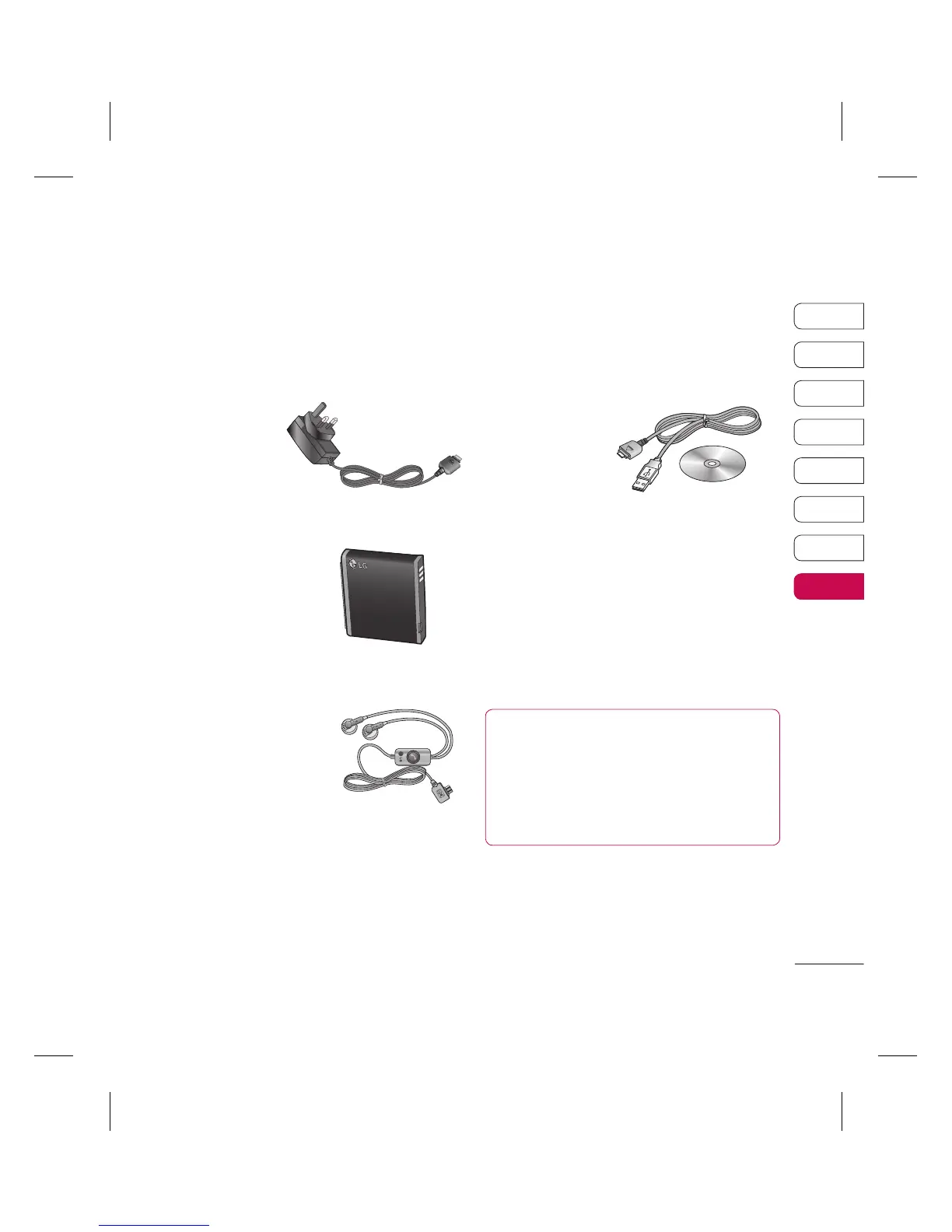These accessories were supplied with your KC780.