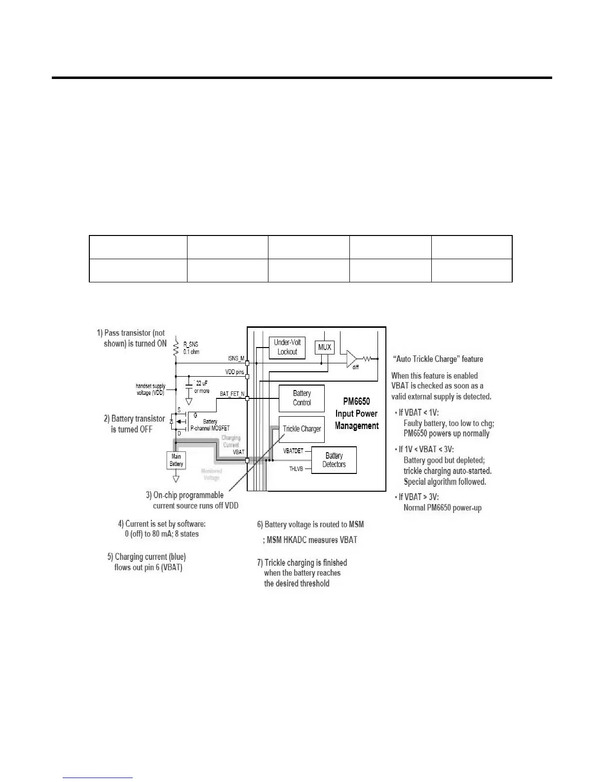 by the PM6650-1M IC, The trickle charger is on-chip programmable current source that supplies