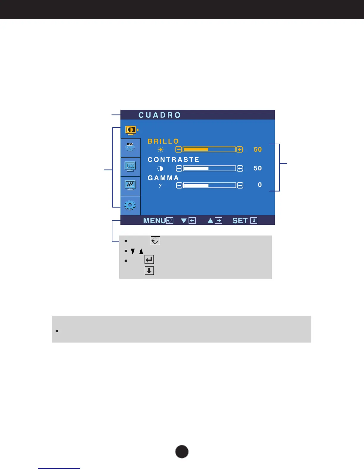 elemento con el sistema OSD. A continuación se enumeran los iconos, los