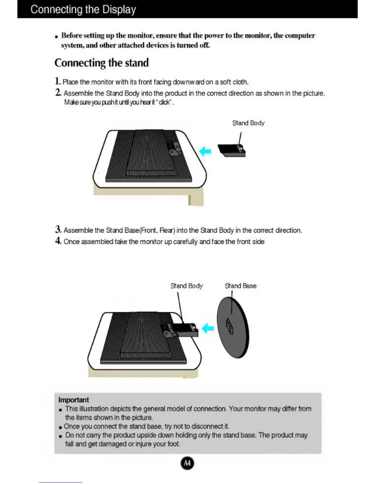 LG L194WT - Connecting the Display; Connecting the Stand