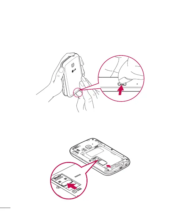 2 Slide the SIM card into its slots as shown in the figure. Make sure the gold contact area on the card is