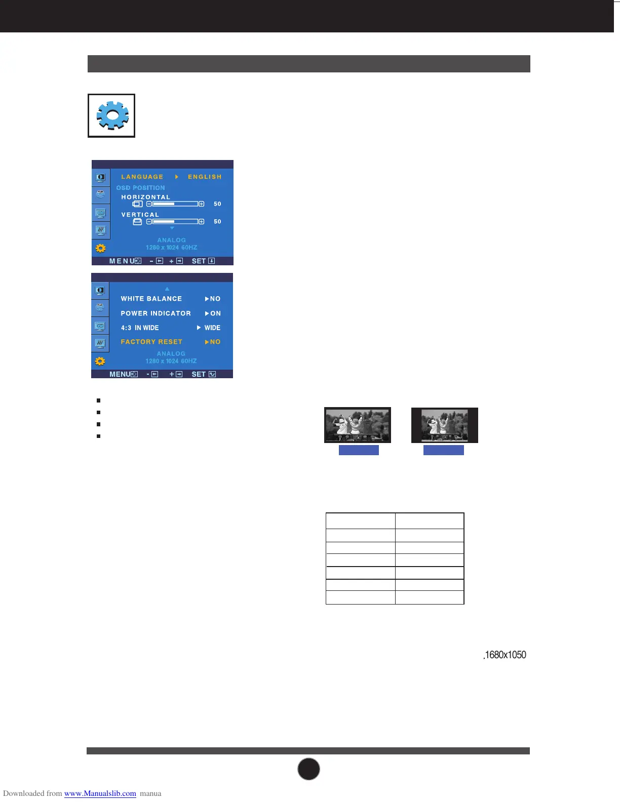 screen ratio. (The 1280X1024 input signal is