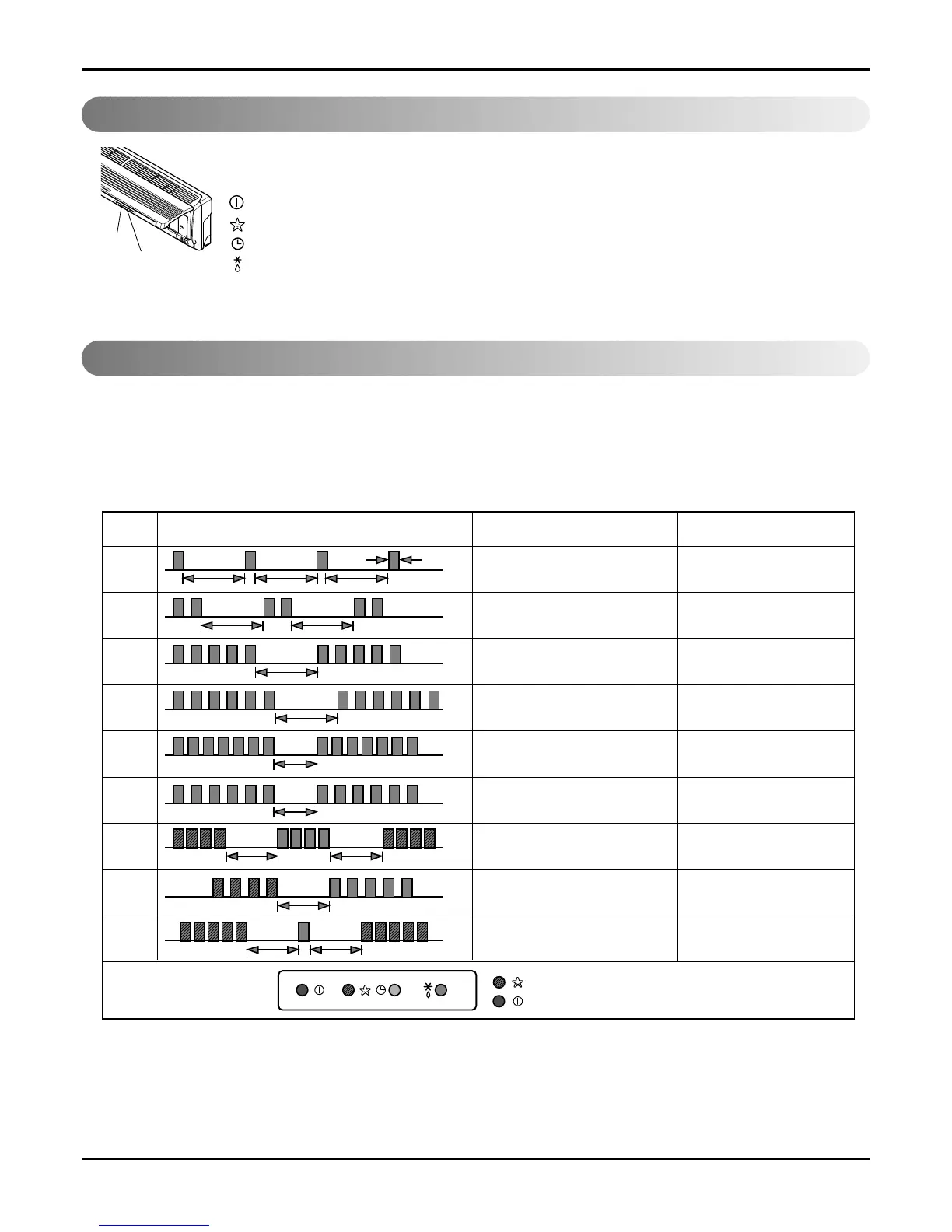 • Error mark is ON/OFF for the operation LED of evaporator body in the same manner as the following table.