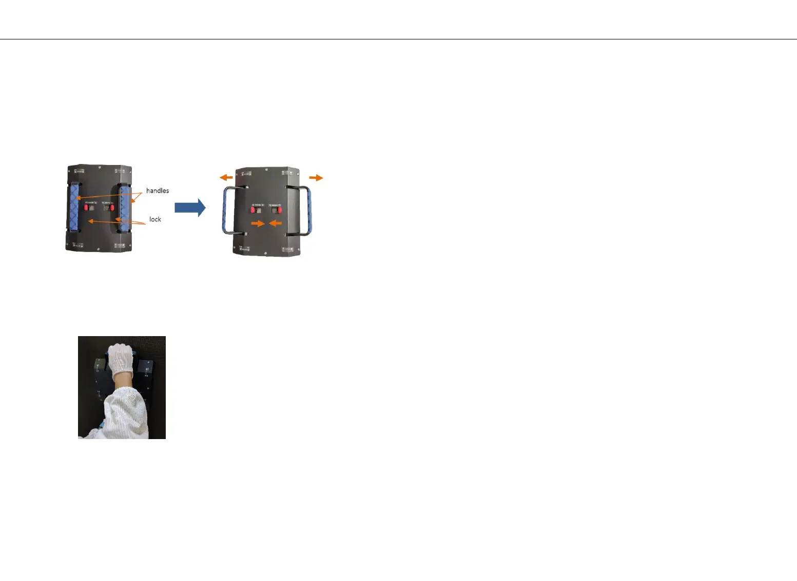 Step2. Hold the 2pcs handles, push the lock inward and pull the handles toward outside, and then take it up.