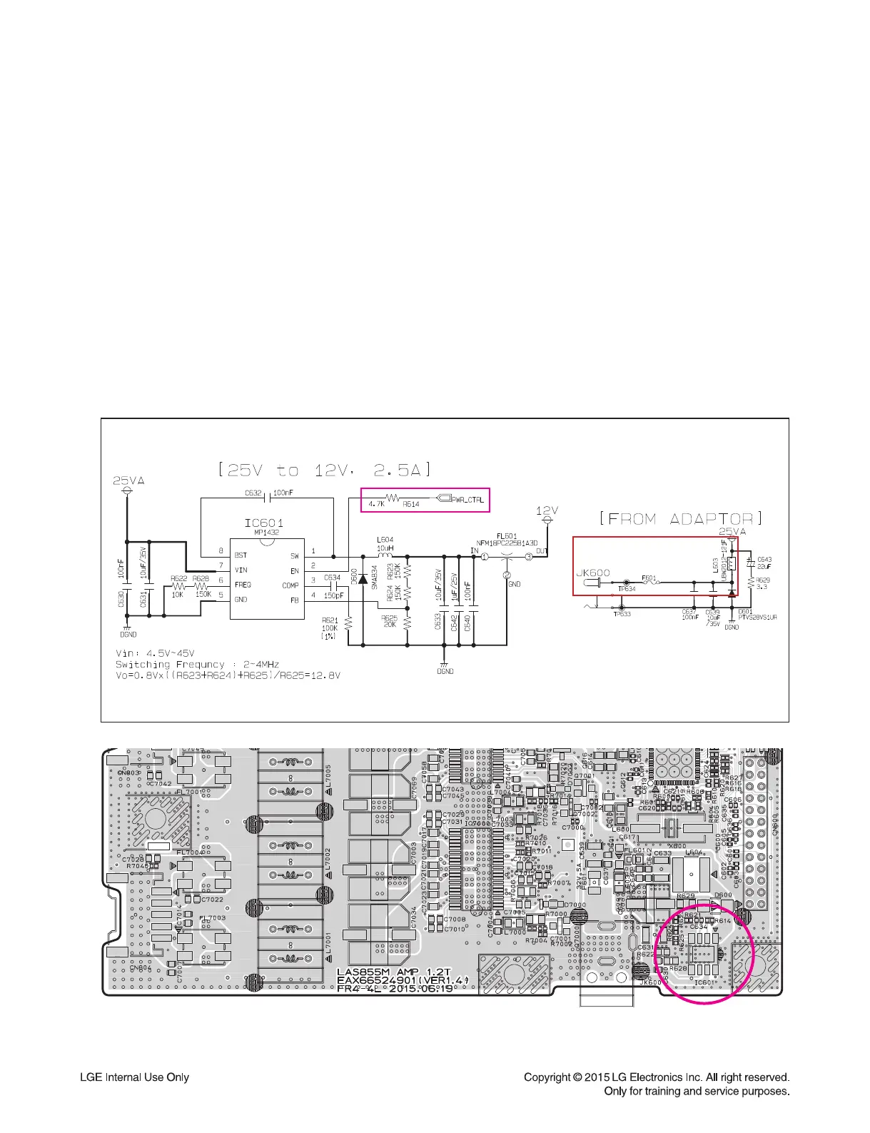 2) If 25 VA is abnormal, check the parts (L603, F601, JK600). And change the weird one.