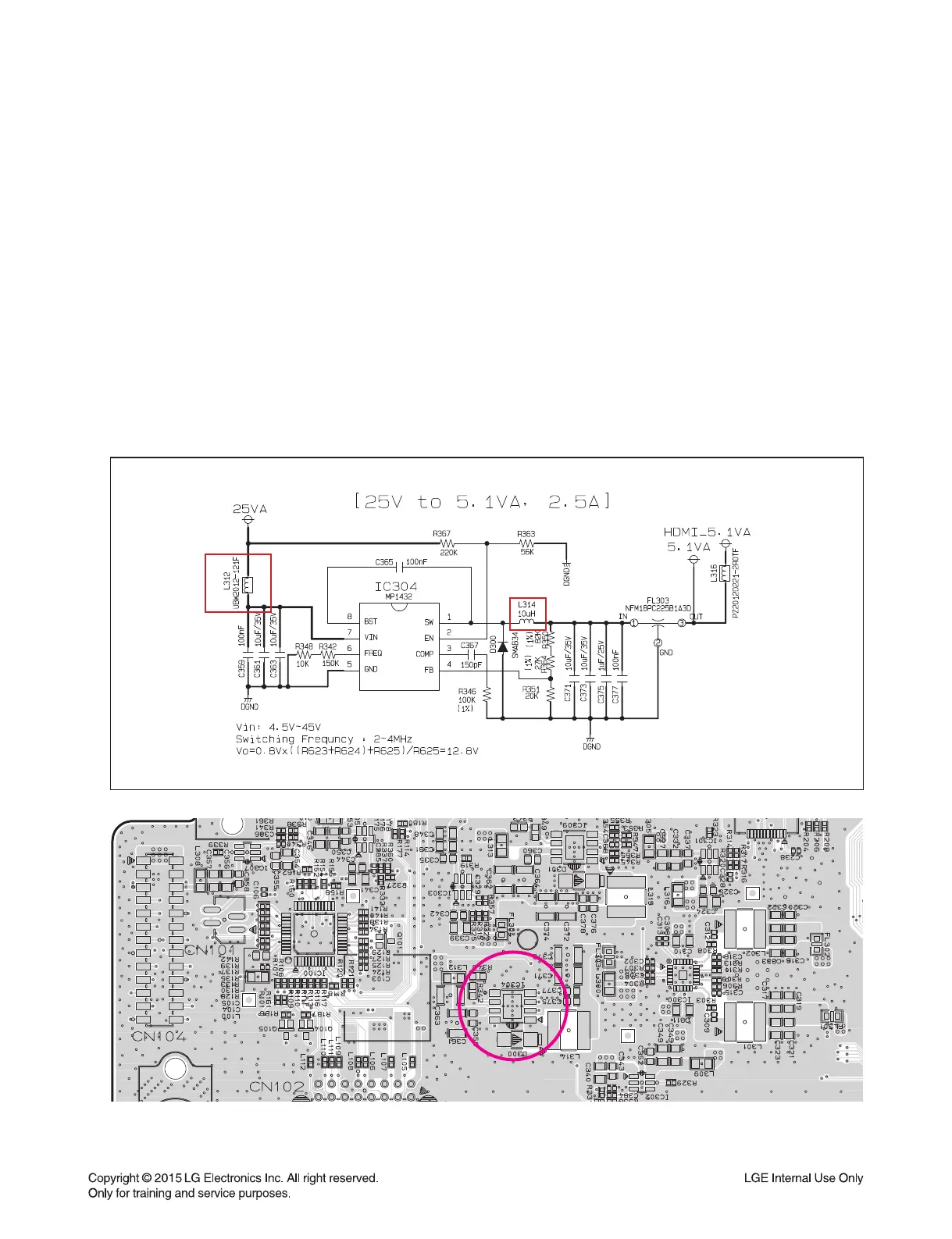 2) If 25 VA is abnormal, check the parts (MAIN board: L312, R367, CN104,