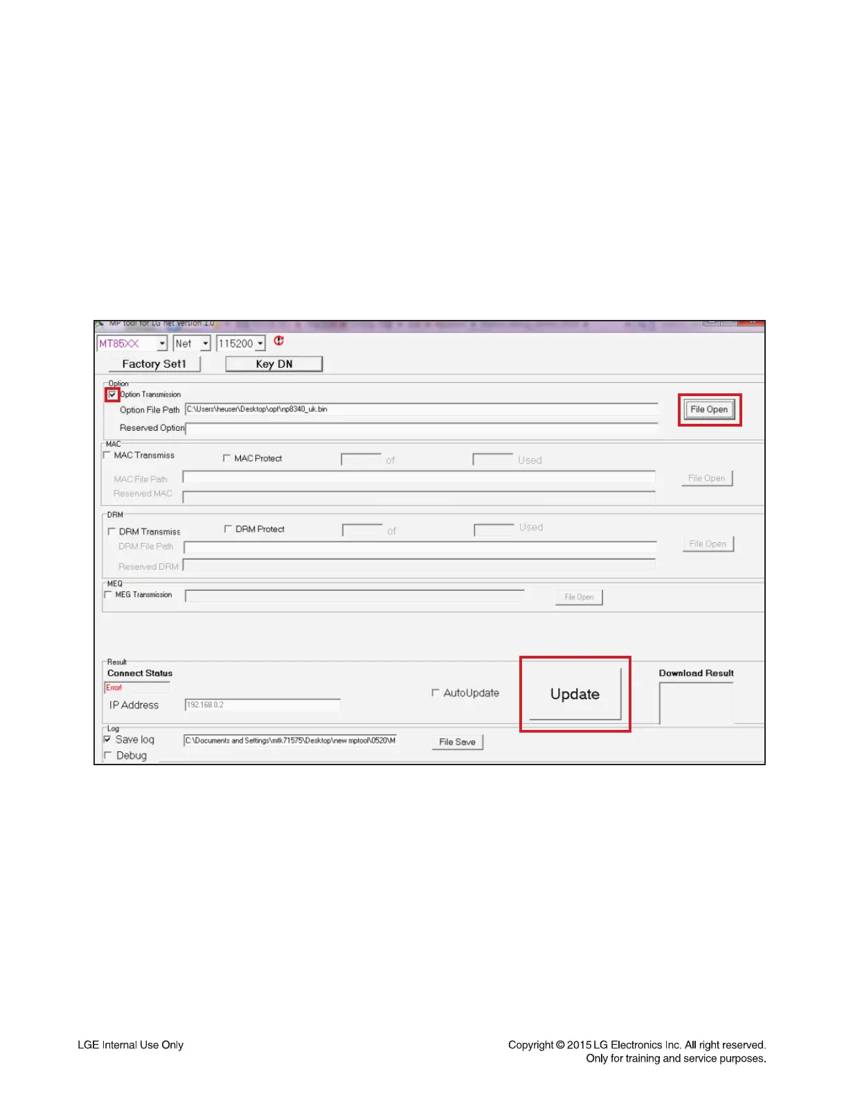 3) Check Option Transmission and select option fi le by “File open” button.