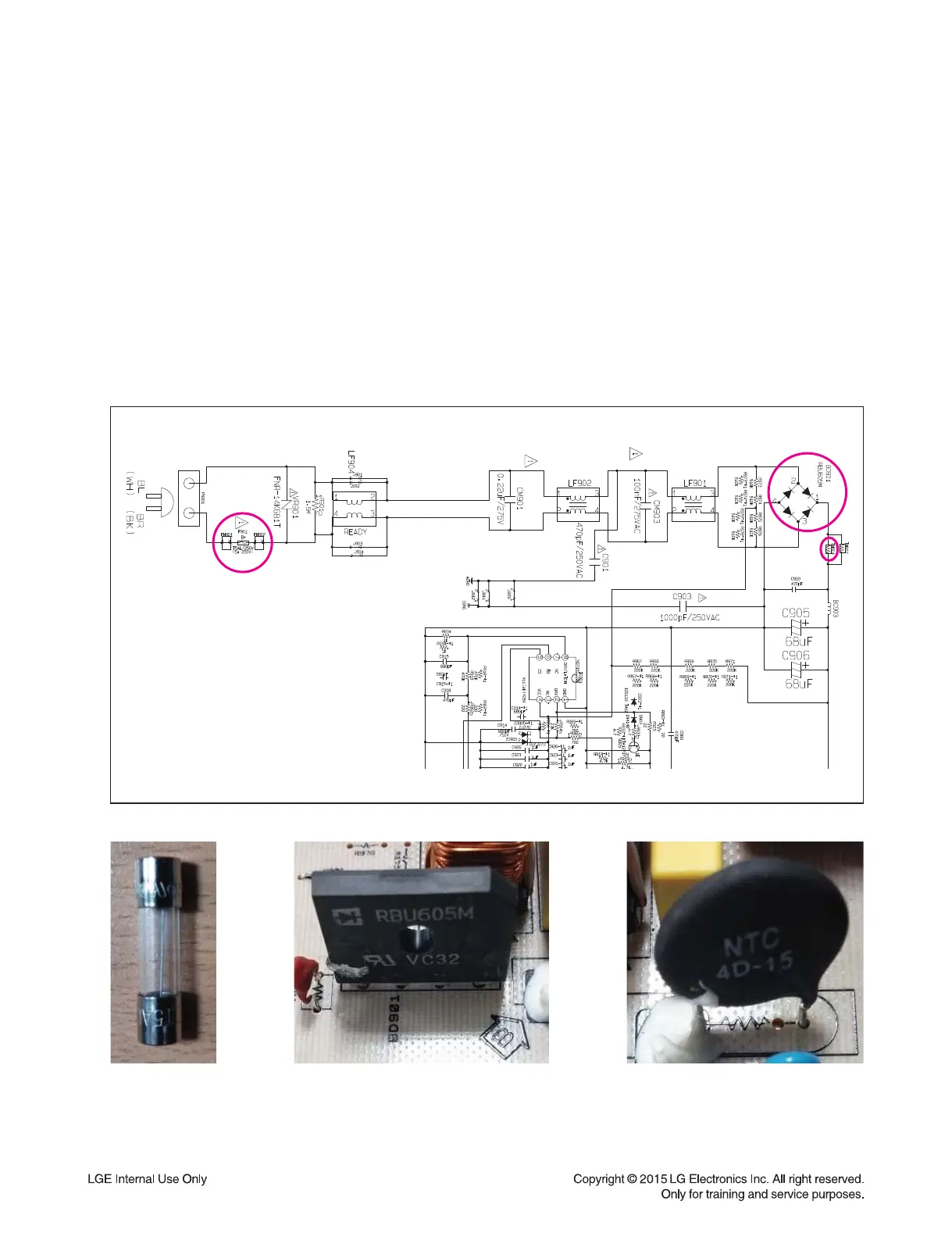 Replace F901, BD901, TH901 on SMPS board.