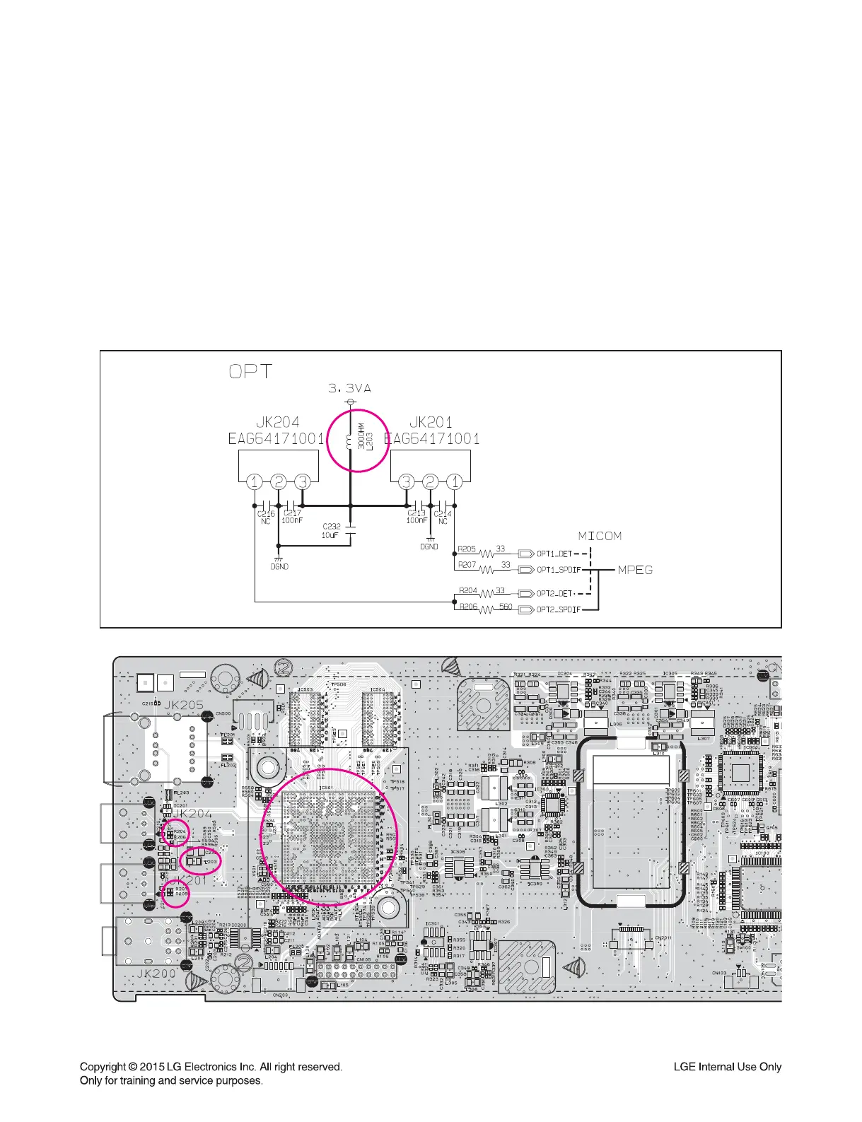 2) If you can check 3.3 VA, please check OPT_DET signal (R204, R205) when optical mode.