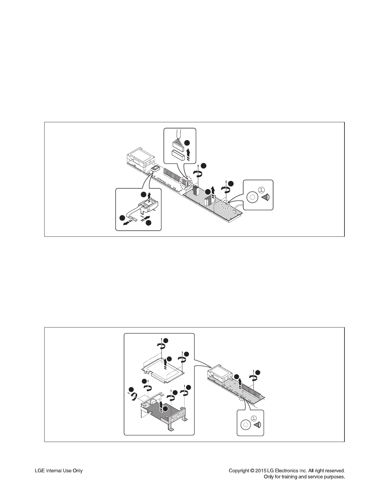 2) Remove the 4 (①) screws securing the SMPS Board.