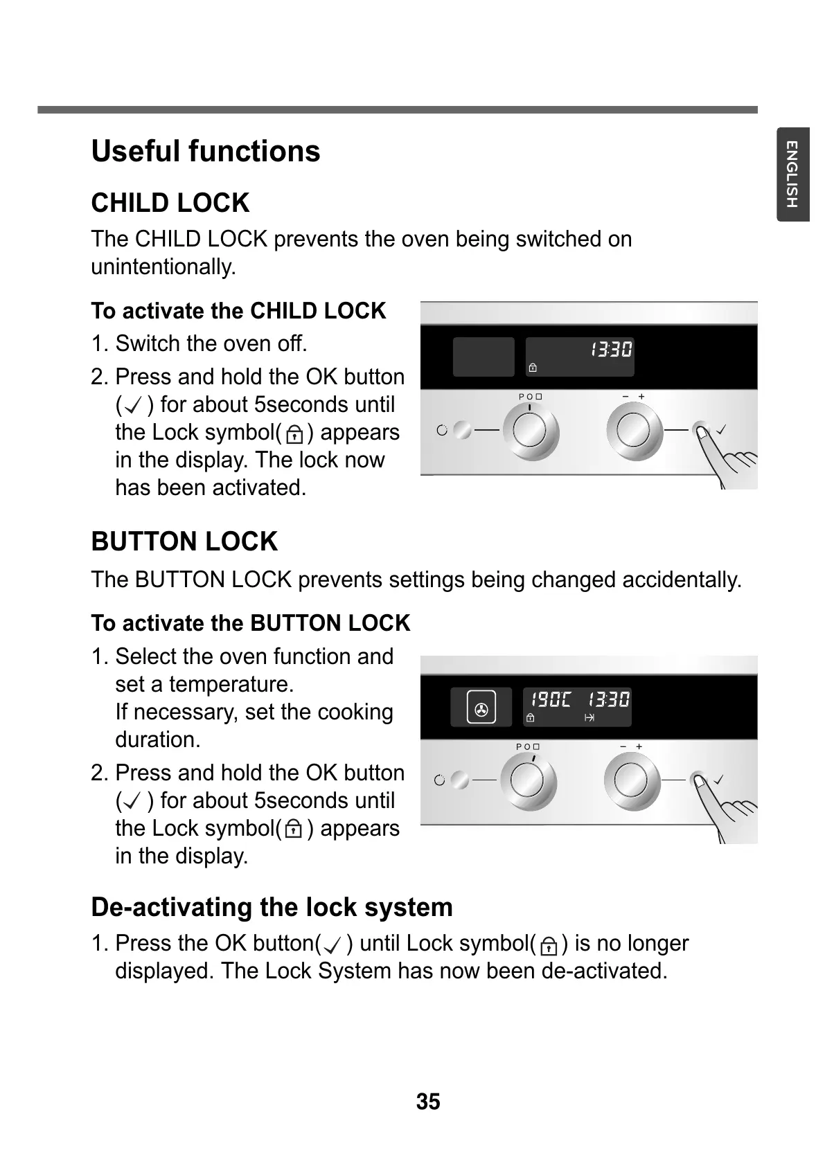 The CHILD LOCK prevents the oven being switched on
