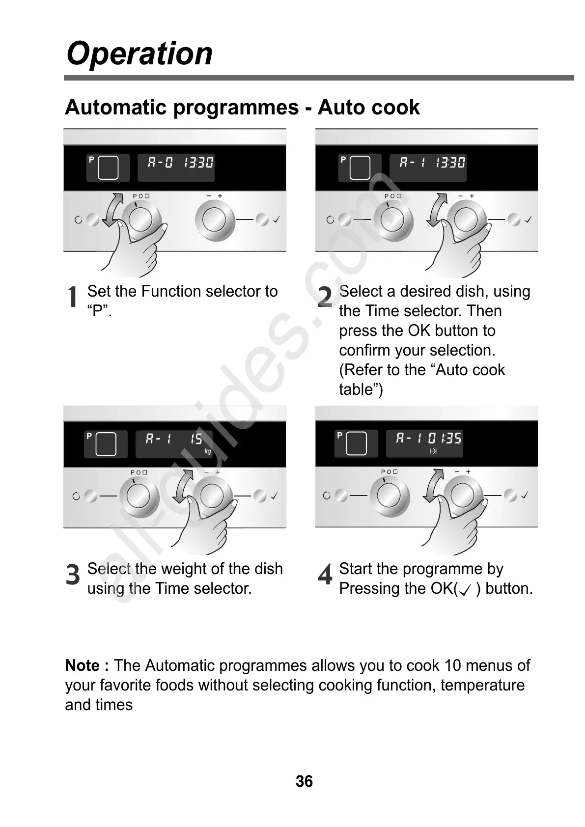 Note : The Automatic programmes allows you to cook 10 menus of