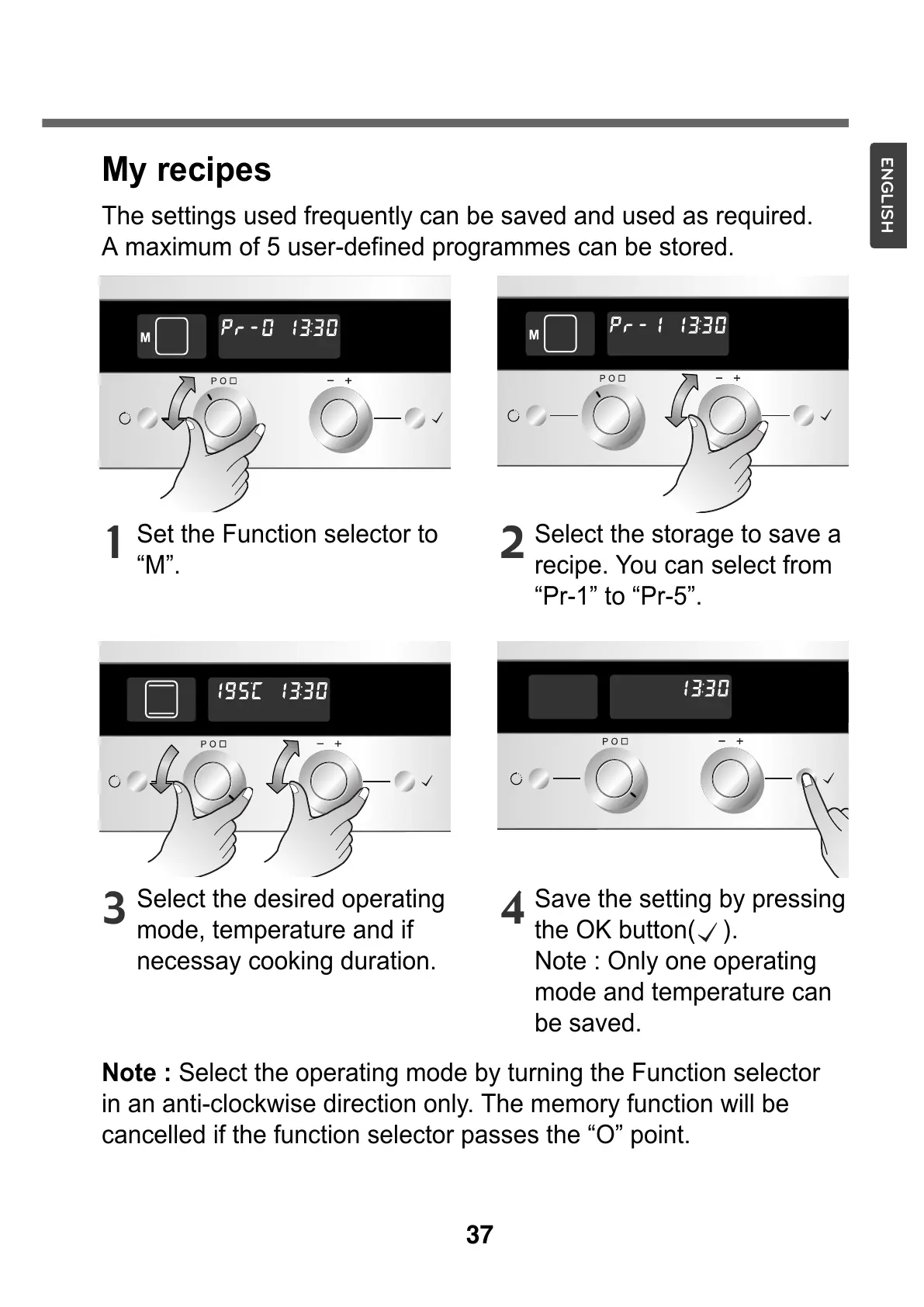 in an anti-clockwise direction only. The memory function will be