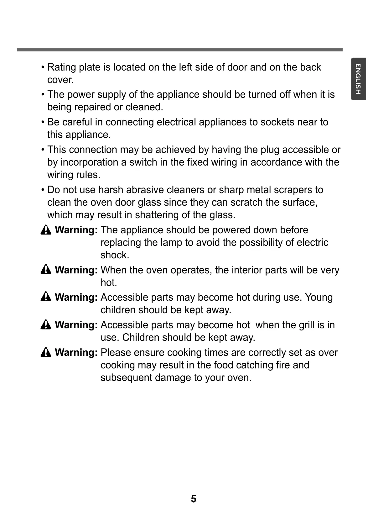 Warning: When the oven operates, the interior parts will be very