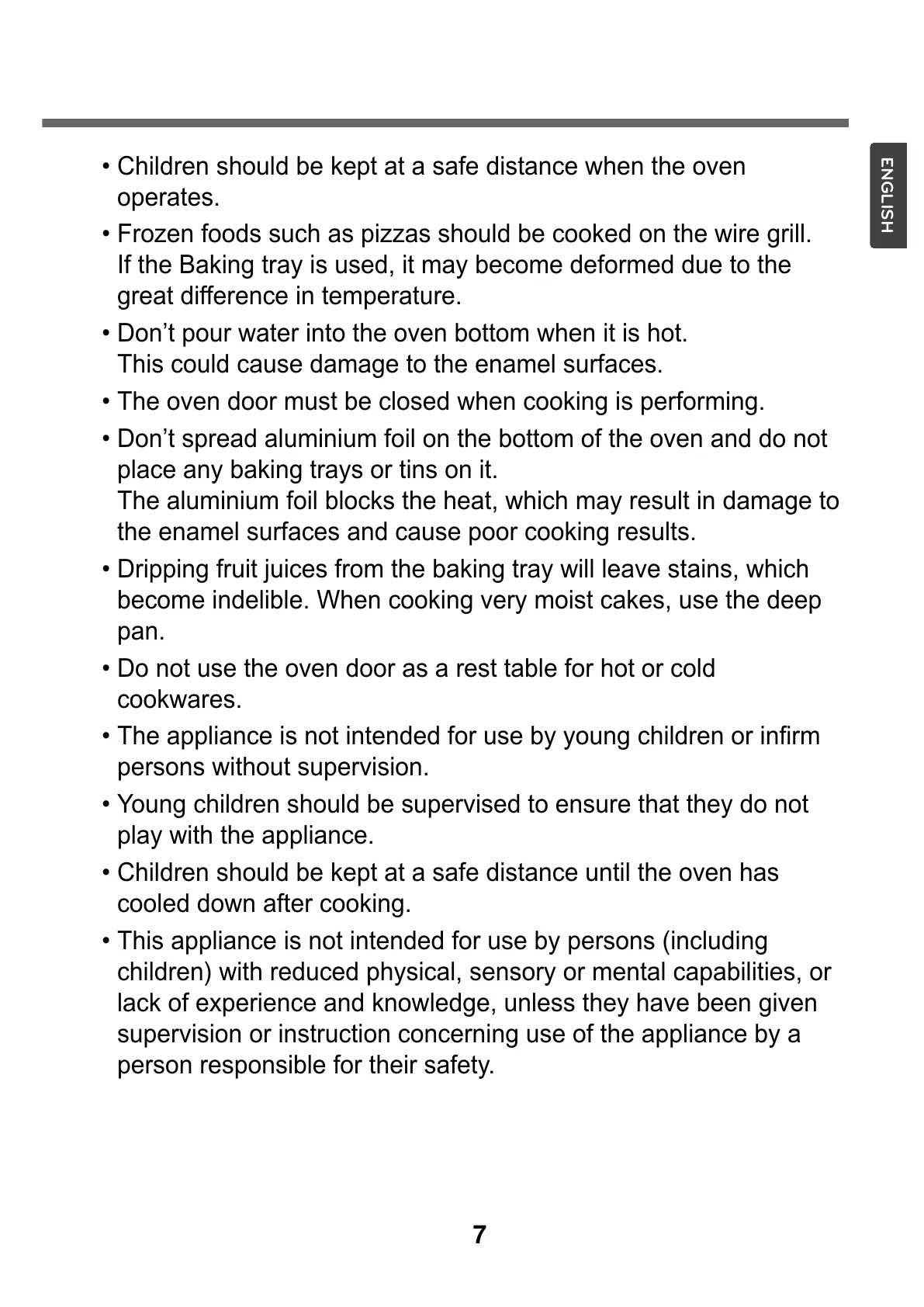 • Don’t spread aluminium foil on the bottom of the oven and do not