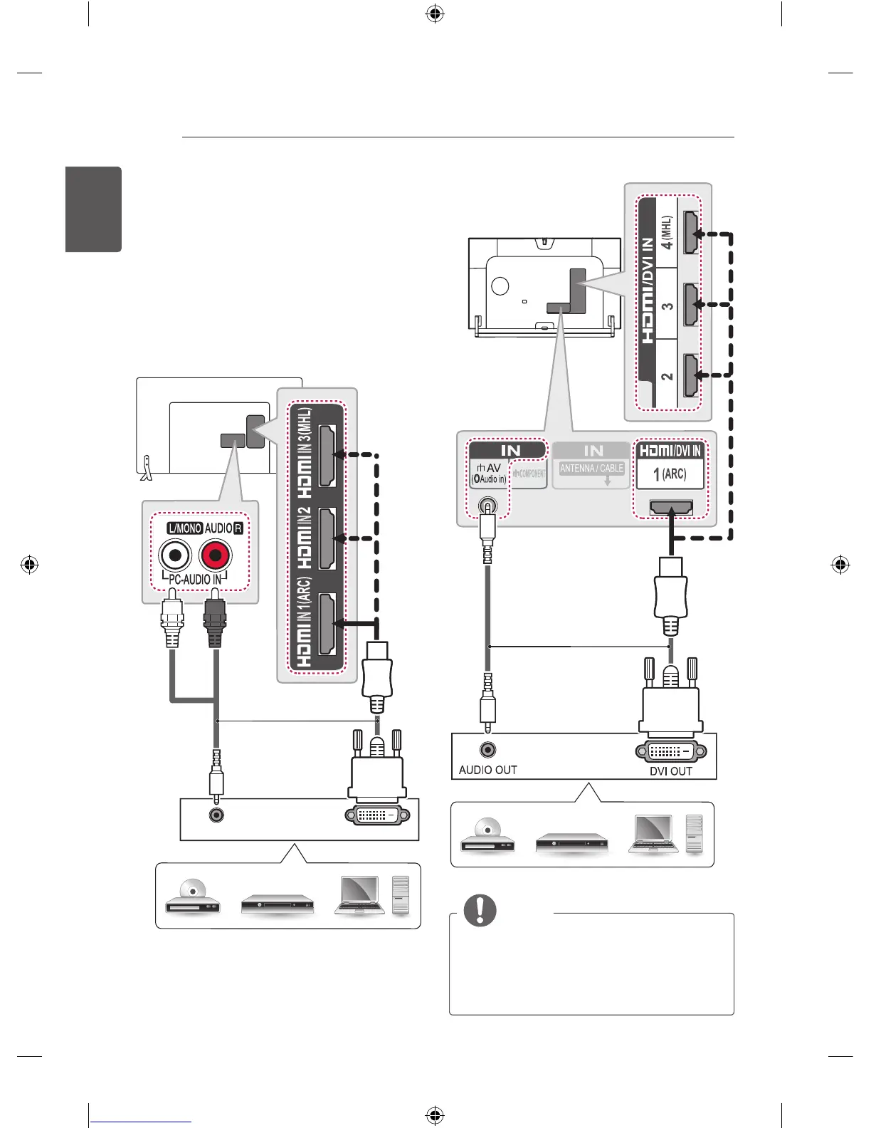 When using the HDMI/DVI cable, Single