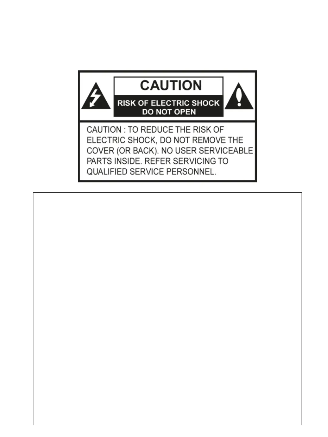2) To reduce the risk of electric shock, do not remove the cover or back of