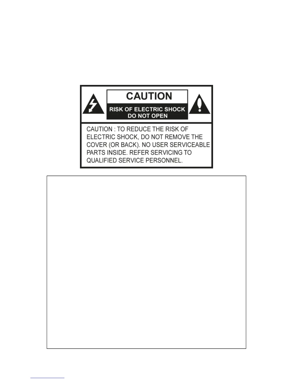 2) To reduce the risk of electric shock, do not remove the cover or back of