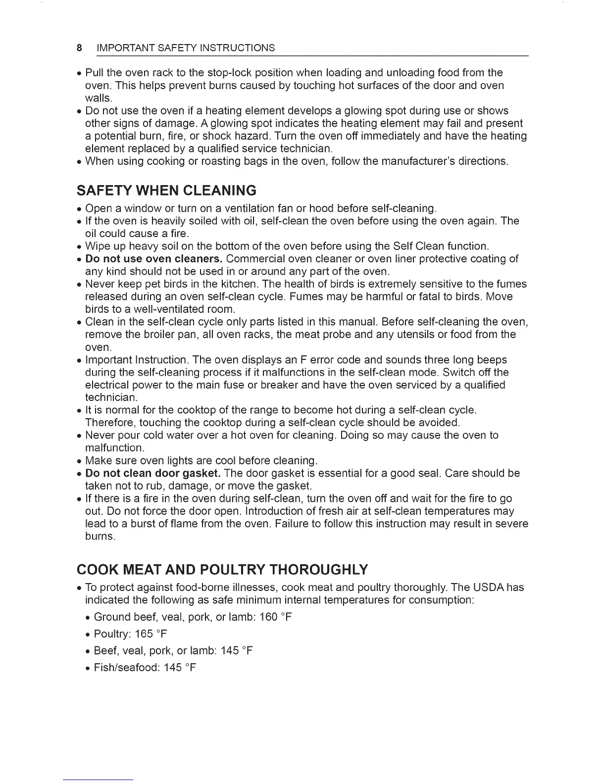 out. Do not force the door open. Introduction of fresh air at self-clean temperatures may