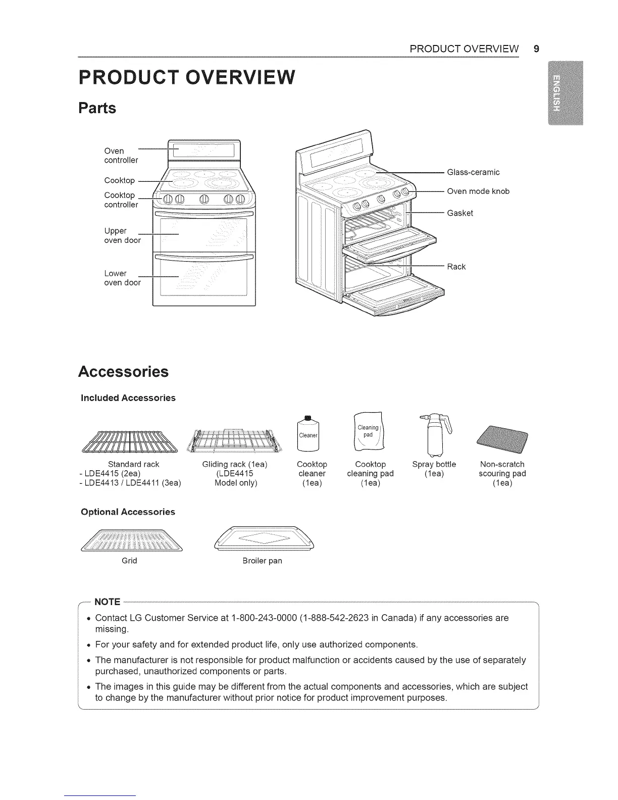 • Contact LG Customer Service at 1-800-243-0000 (1-888-542-2623 in Canada) if any accessories are