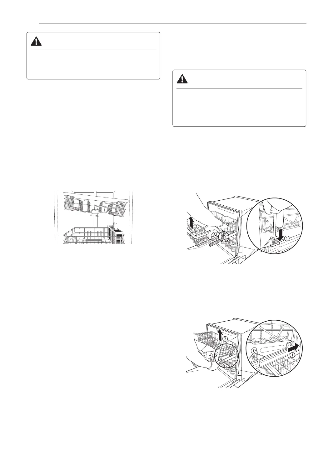 • Antes de empujar la bandeja superior en el lavavajillas,