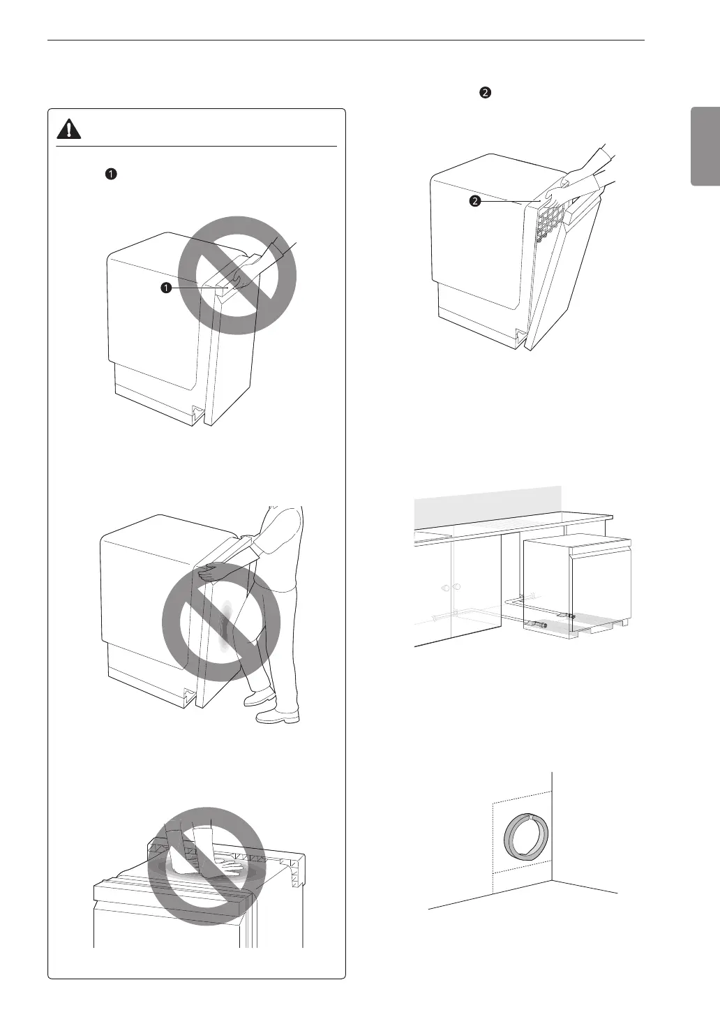 • Do not push the top of the dishwasher. Doing so