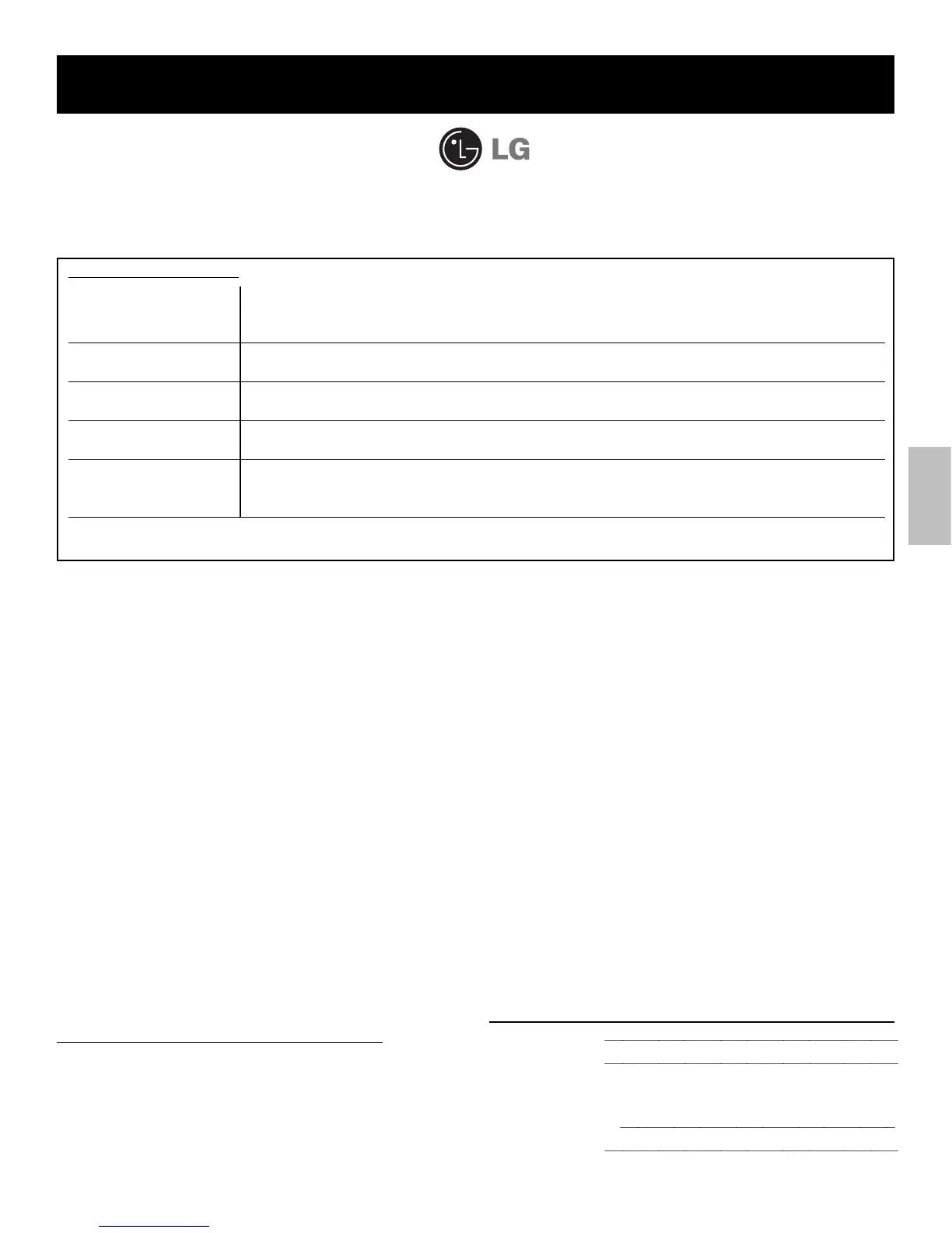 of original purchase warranty, LGE will also provide, free of charge, all labor and on-site service to replace the defective part.
