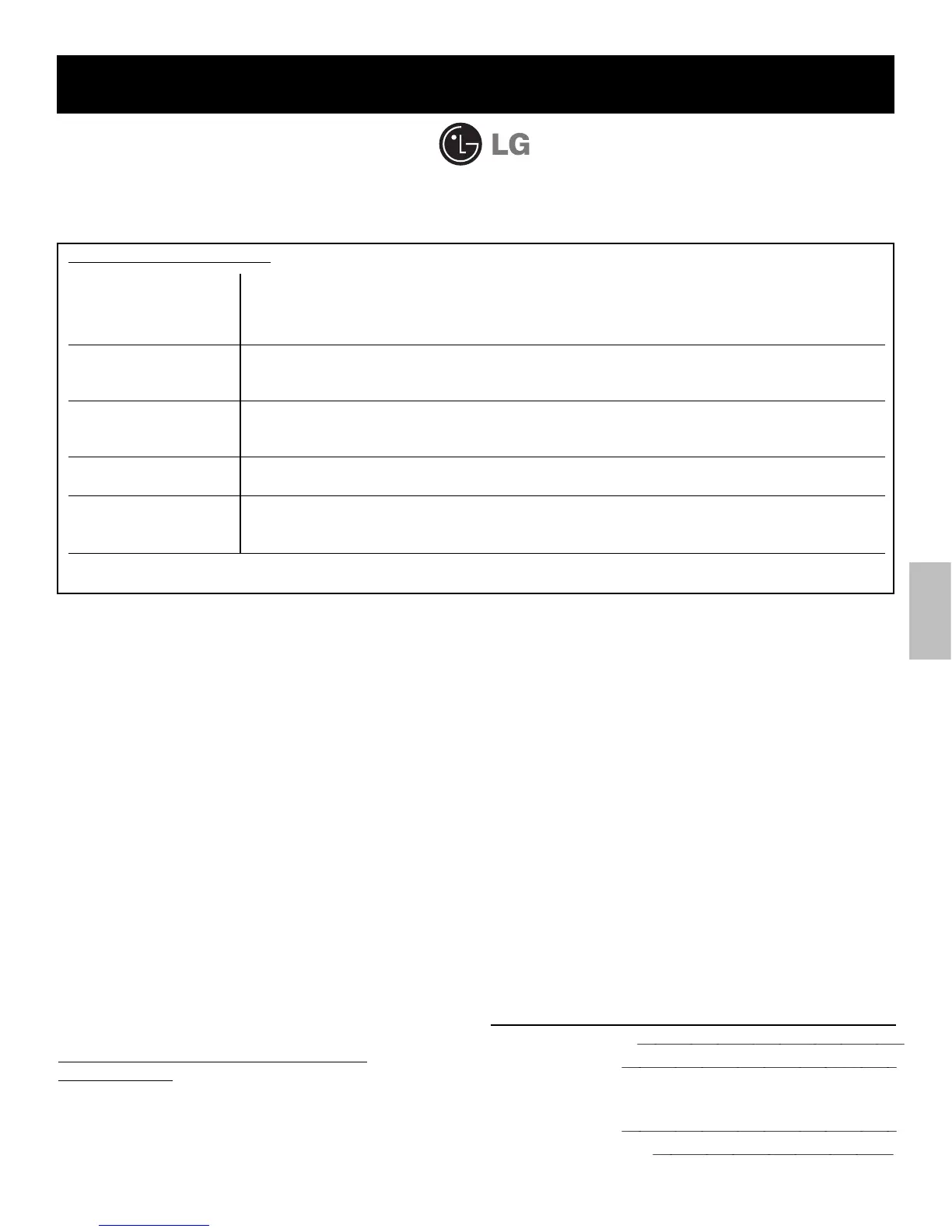 vigente desde la fecha original de compra del producto,LG Electronics reemplazará las piezas defectuosas. Las piezas de reemplazo tendrán las mismas