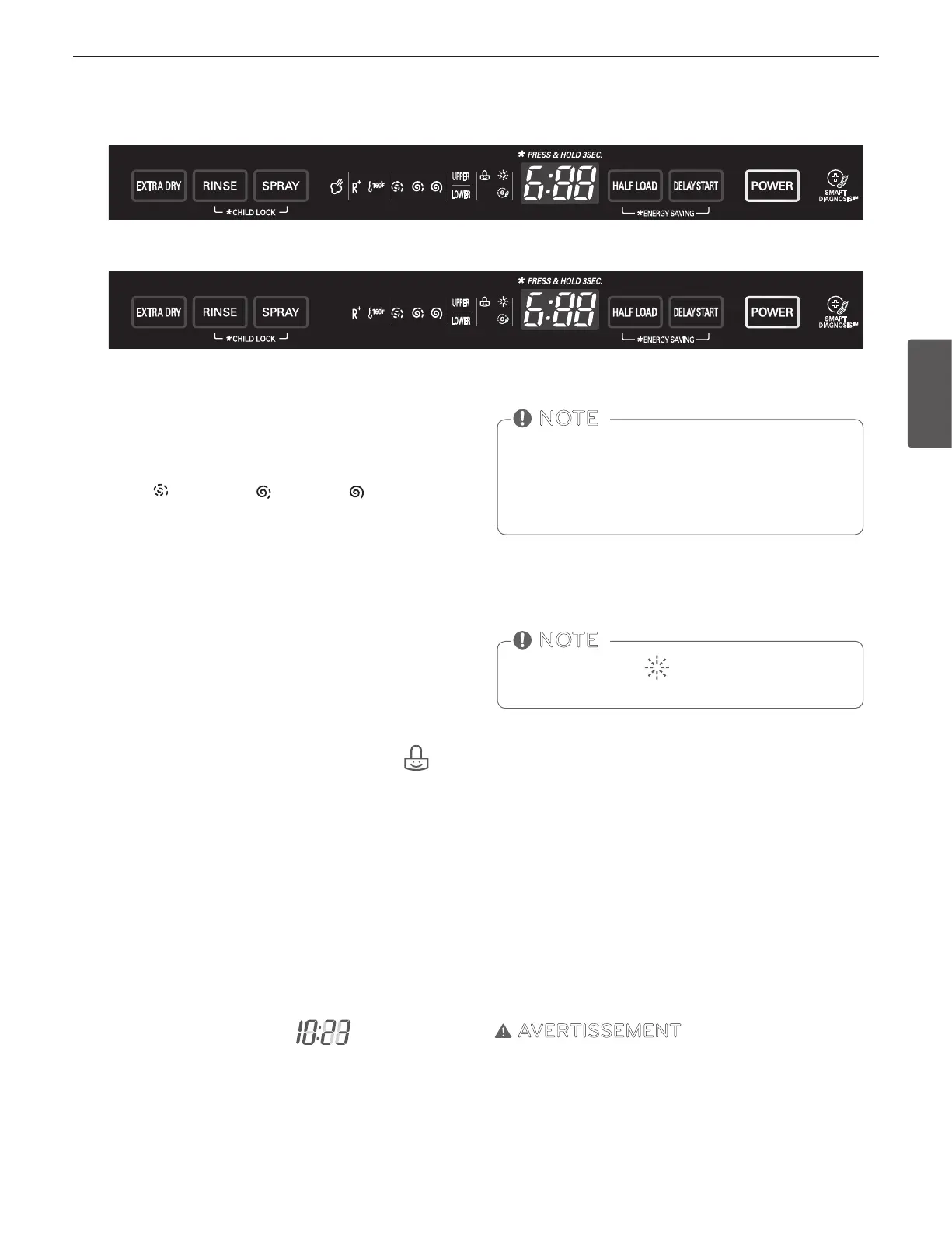 trois secondes. Le Verrouillage Enfant s'allumera à l'écran