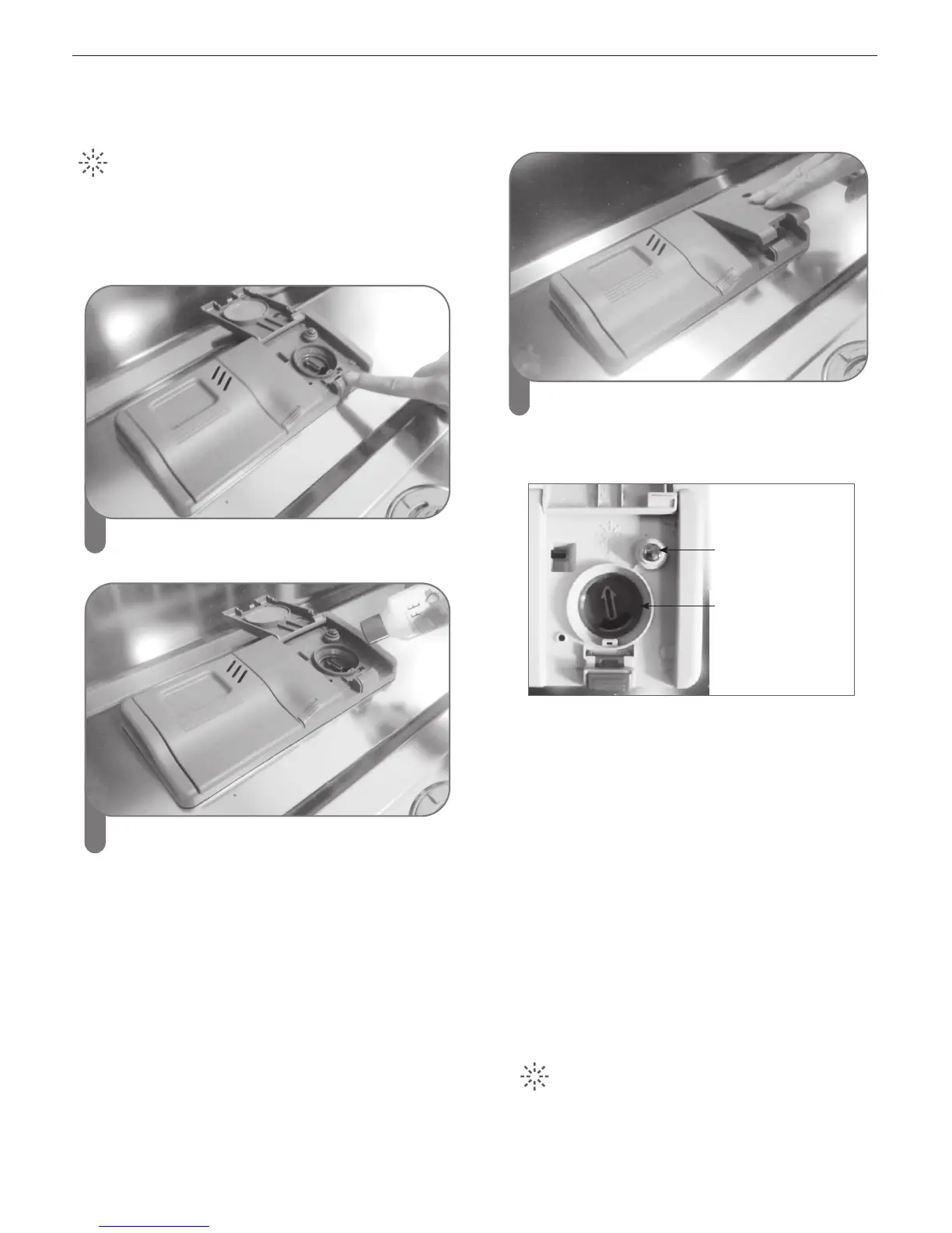To adjust the rinse aid dispenser setting, remove the cap and ad-