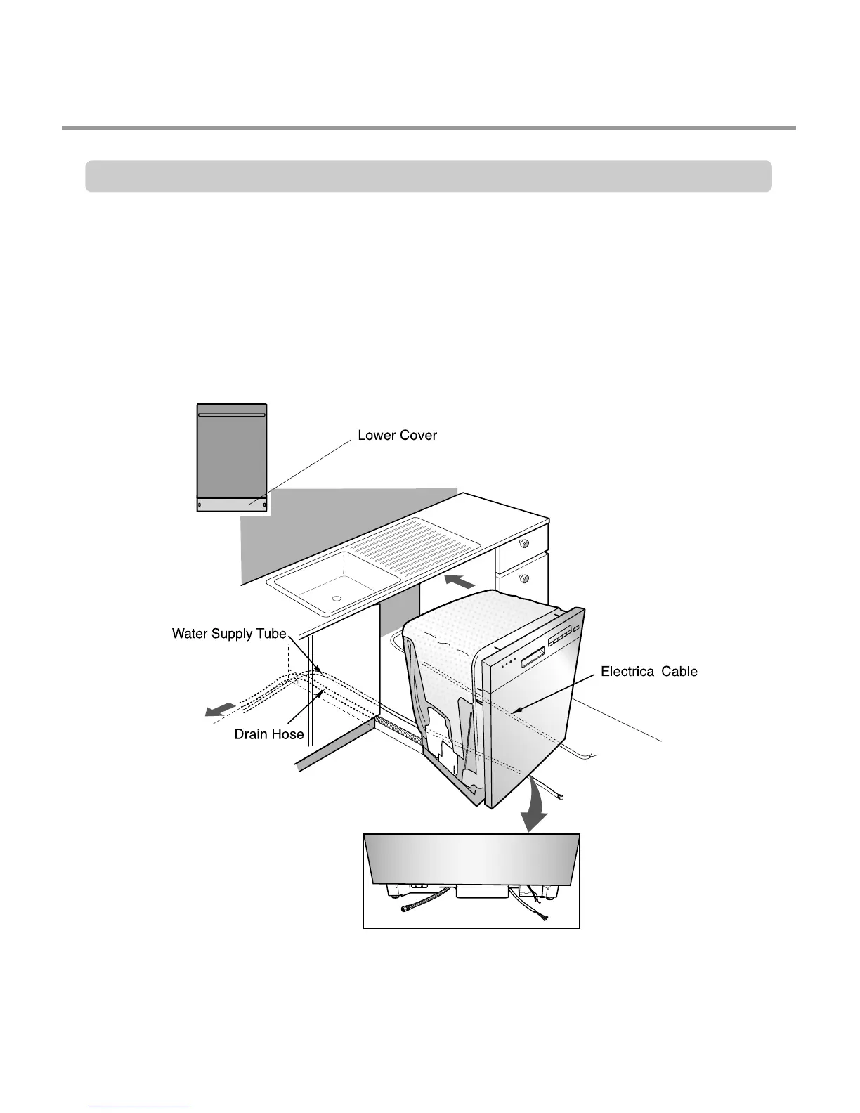 3. Slide the dishwasher into the cabinet opening carefully. Make sure that the drain hose