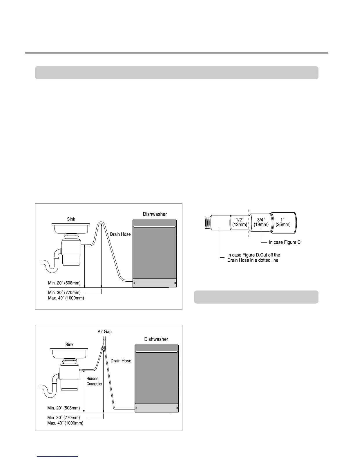 1. If the end of the drain hose does not fit to the drain line, use an adapter (not supplied) that