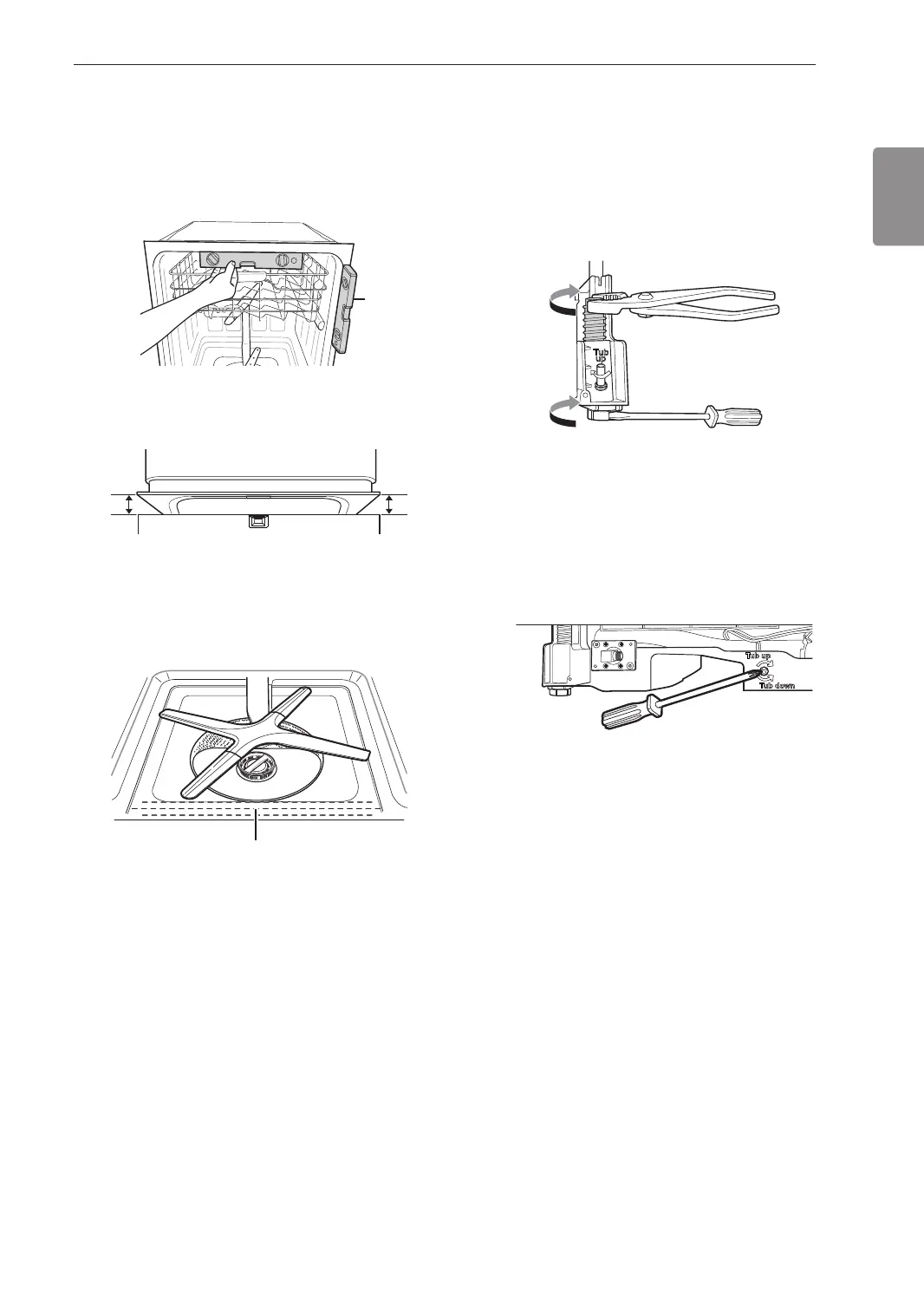 center of both tub lower indentations, the dishwasher