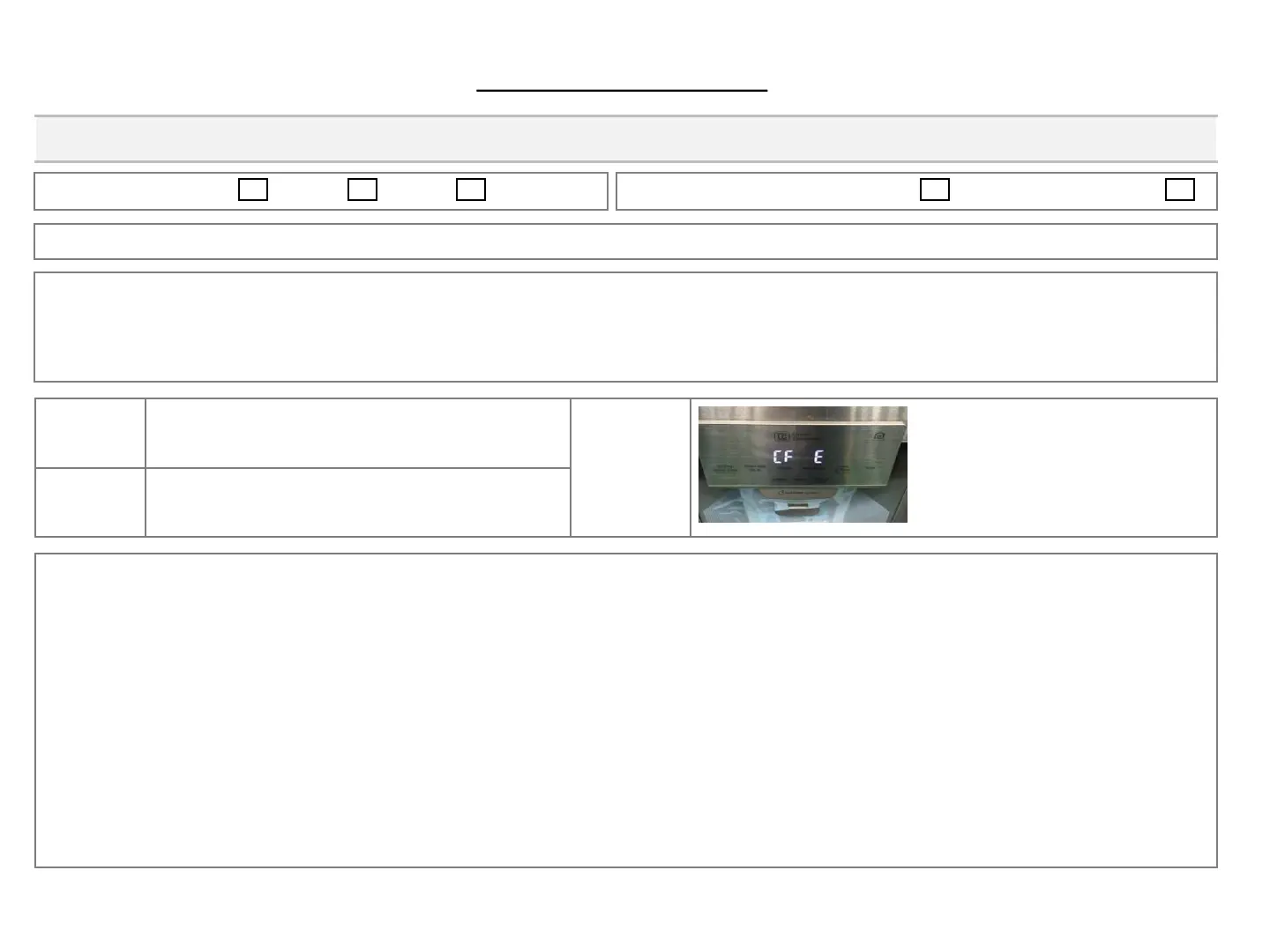 The display panel shows CF E error code