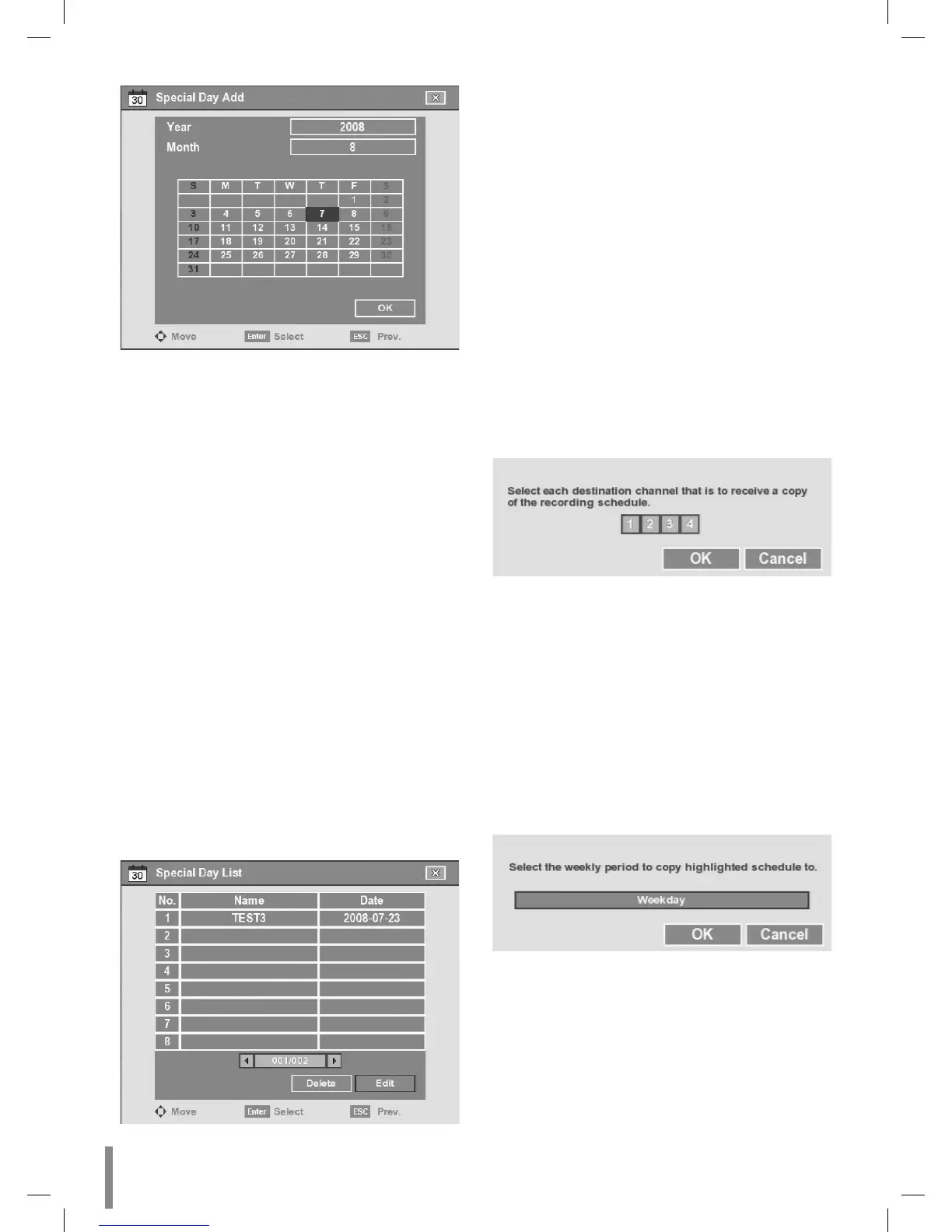 other recordings, only the special day recording is possible.