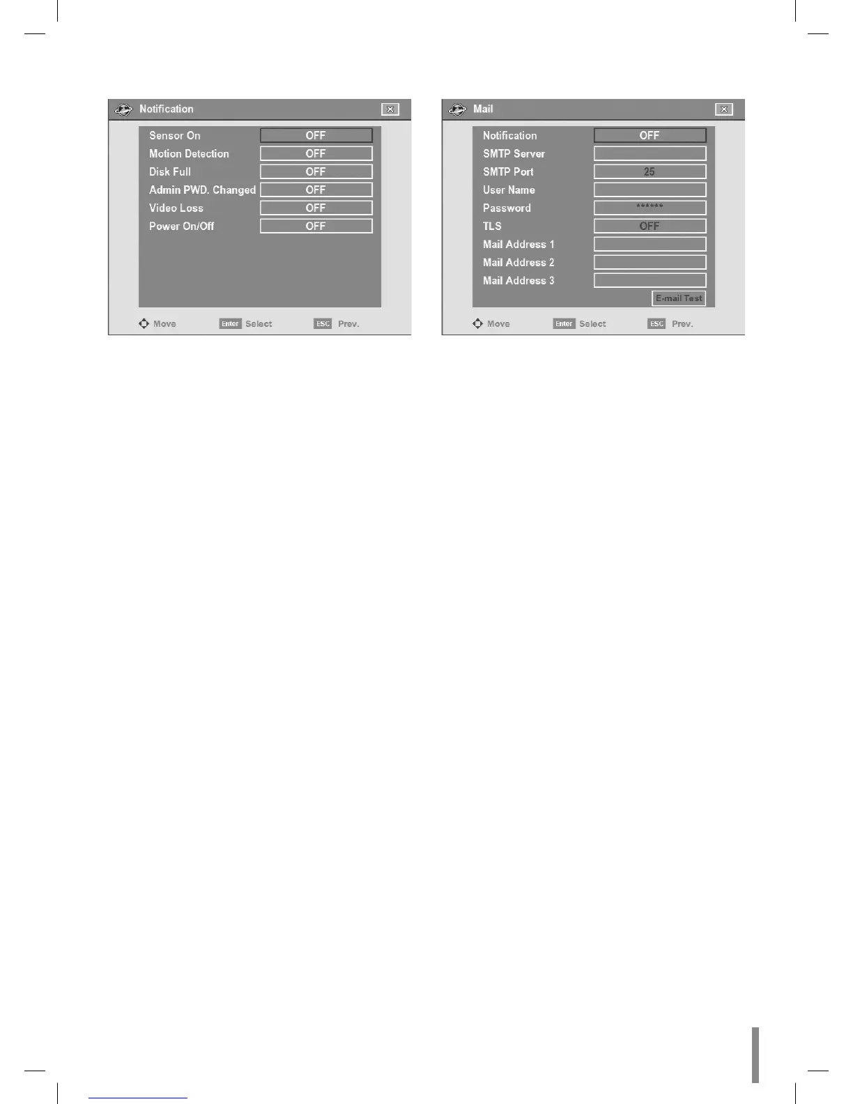 settings are optional. The DVR can send e-mail directly