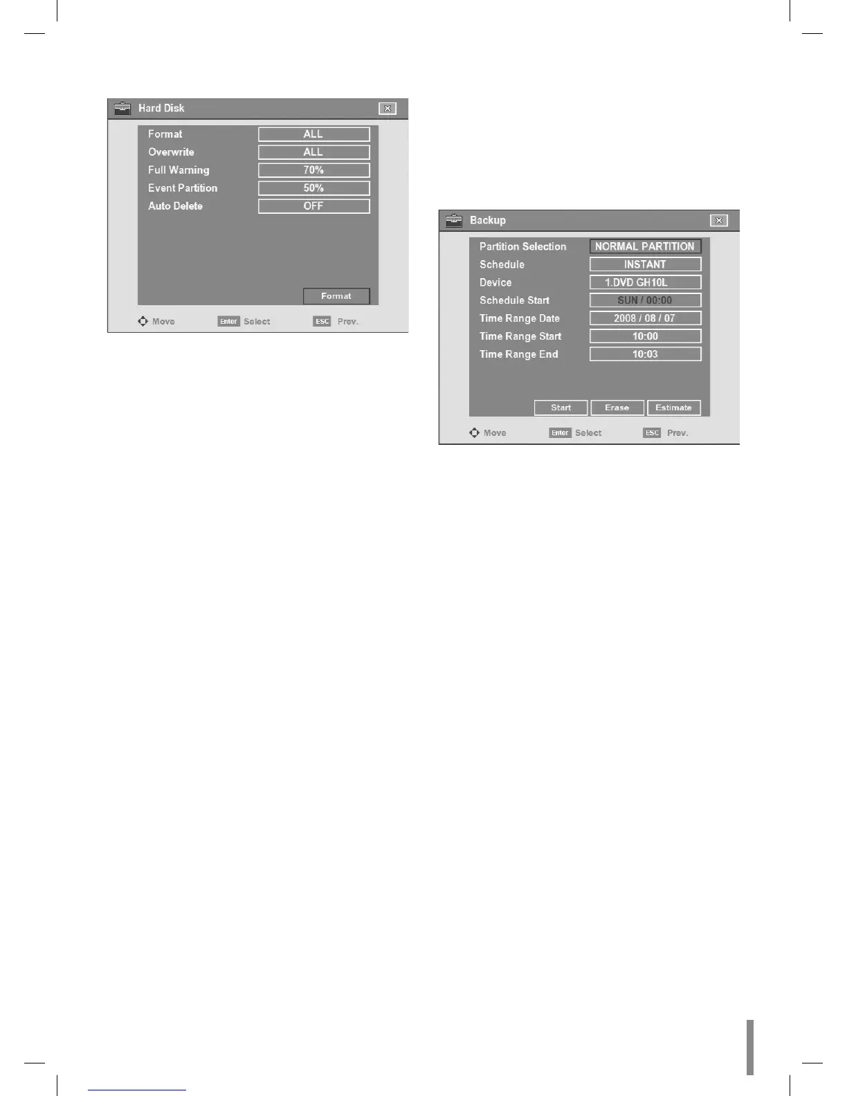 Format: Initializes the HDD (Hard Disk Drive). All data on
