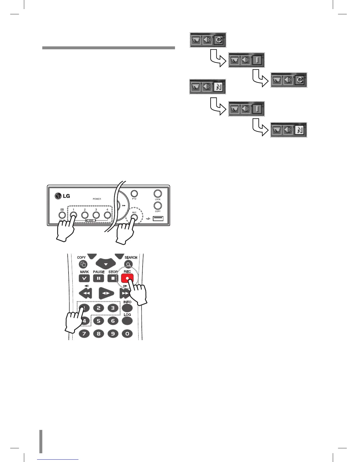 1. Press the REC button and then press the channel button