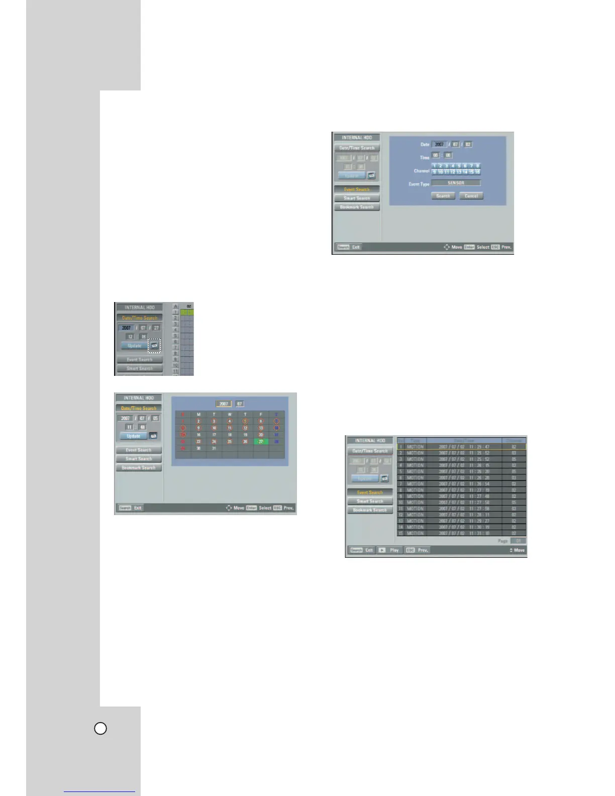 Search a recorded picture by date and type of event.
