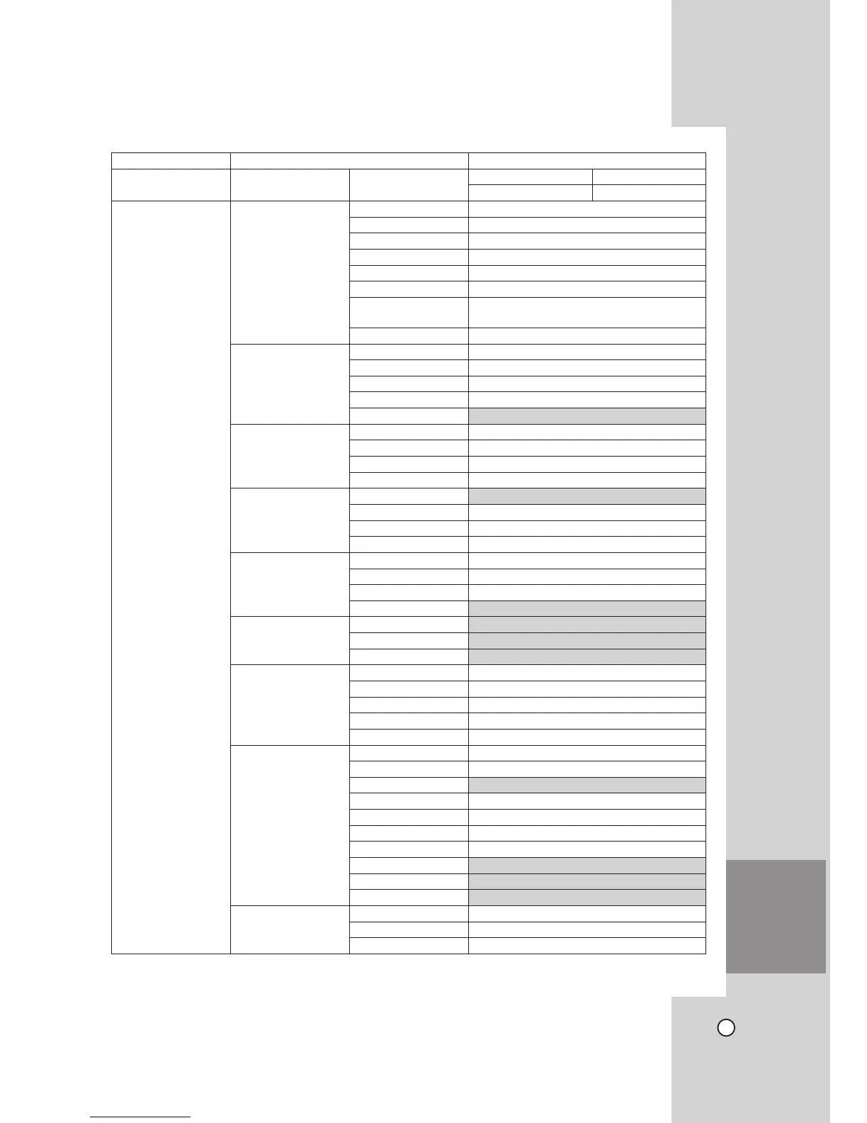 Classifi cation Detailed Items Default Setting