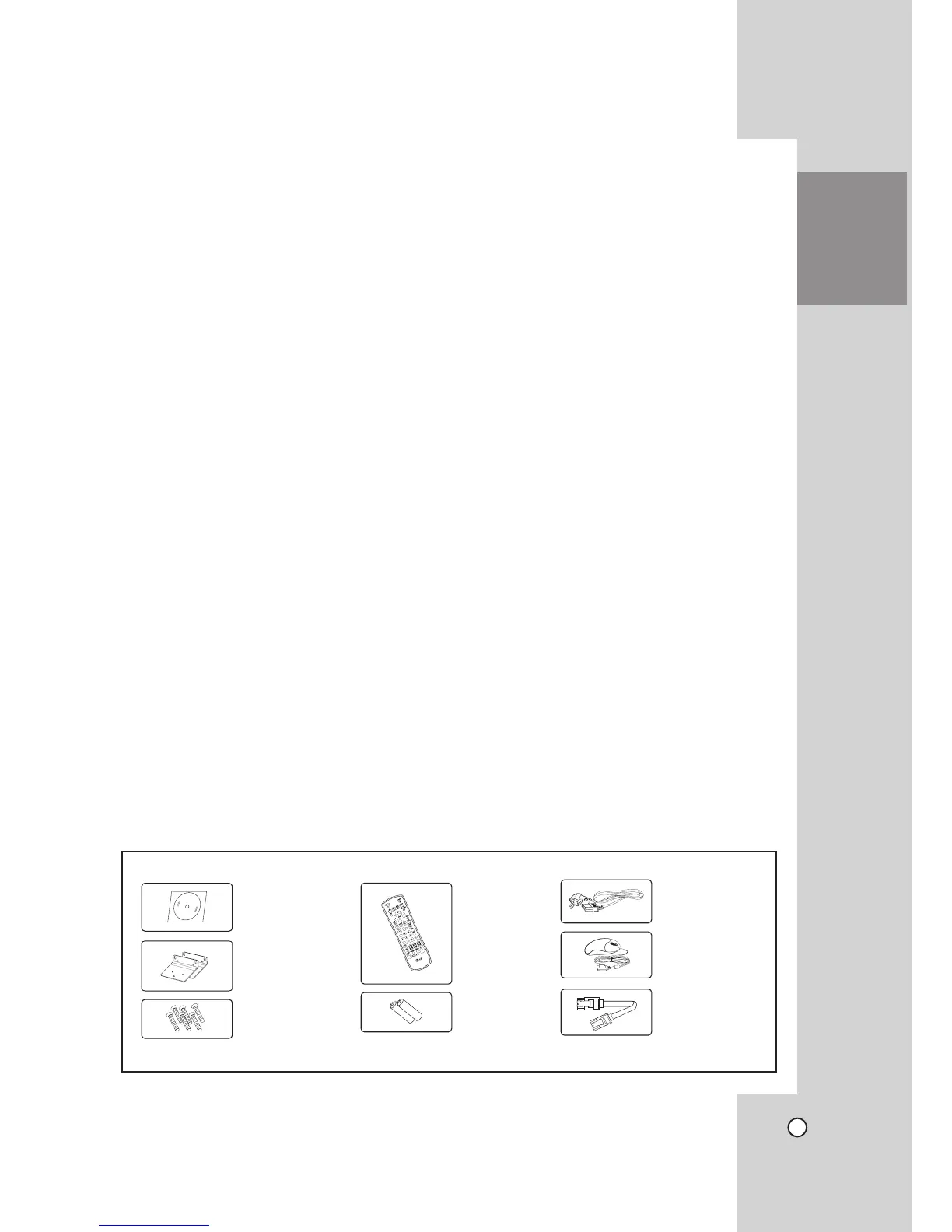 Note: The accessories may be different depending on models.
