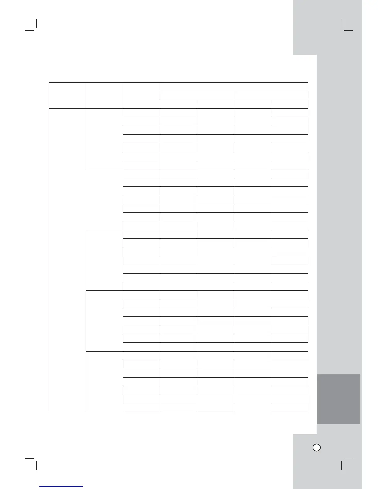 Recording Time Table (250GB HDD)
