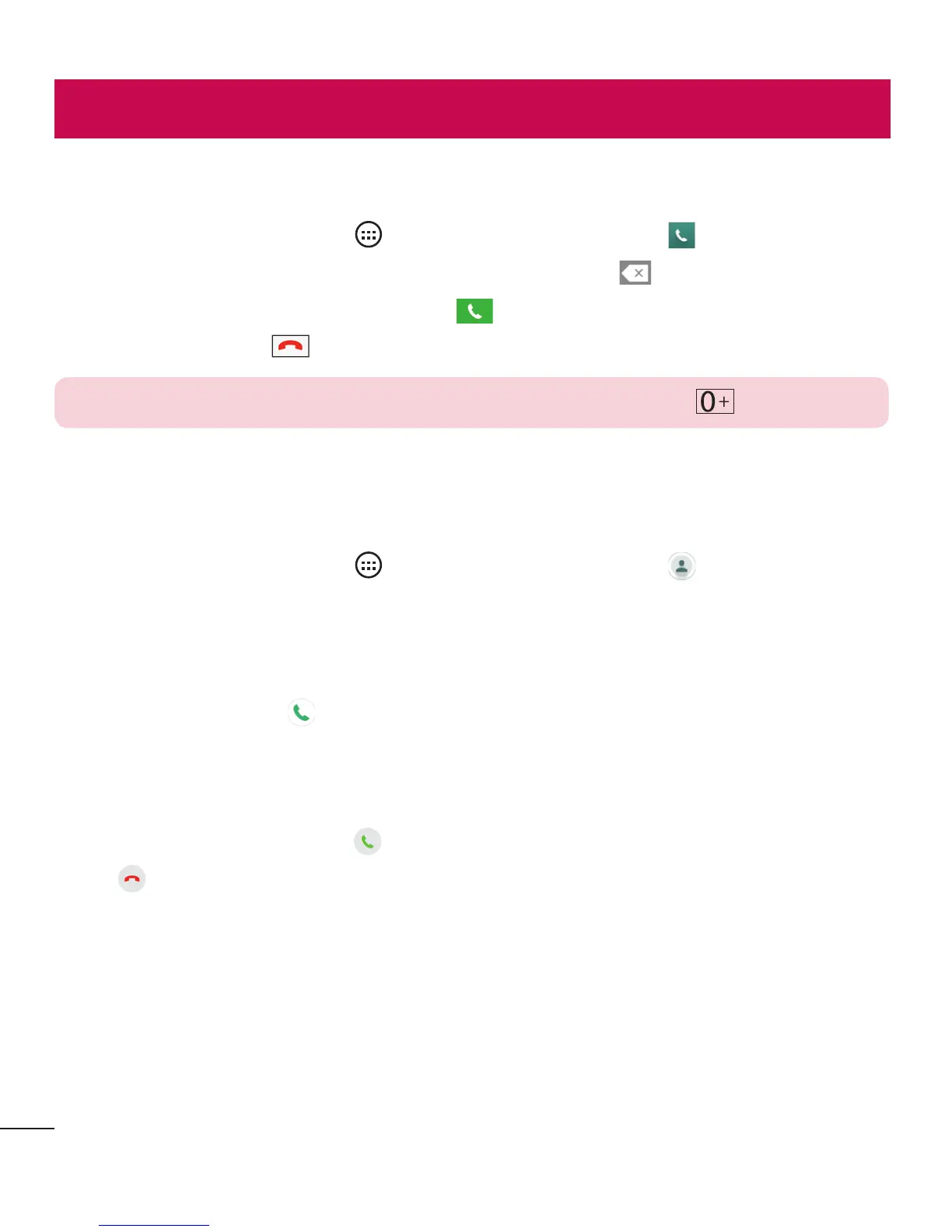 TIP! To enter "+" to make international calls, touch and hold .