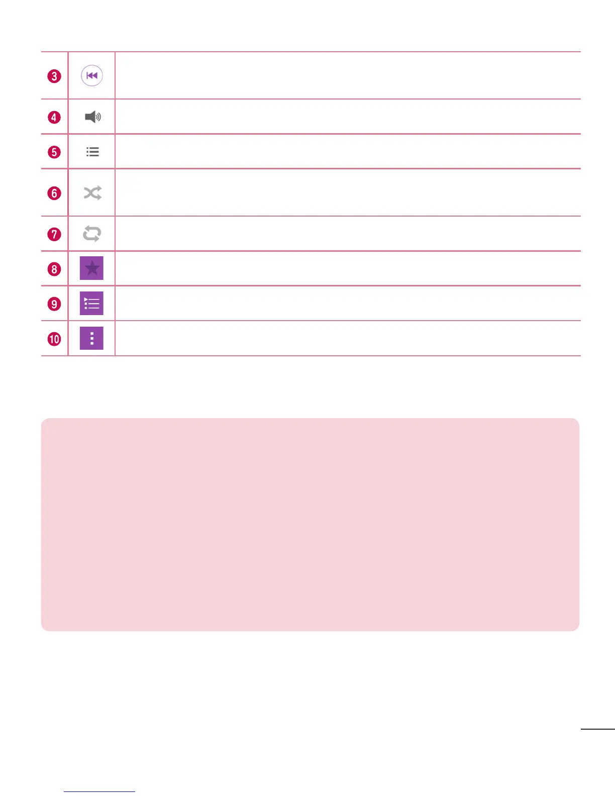 playlist or shuffle list. Touch and hold to rewind.