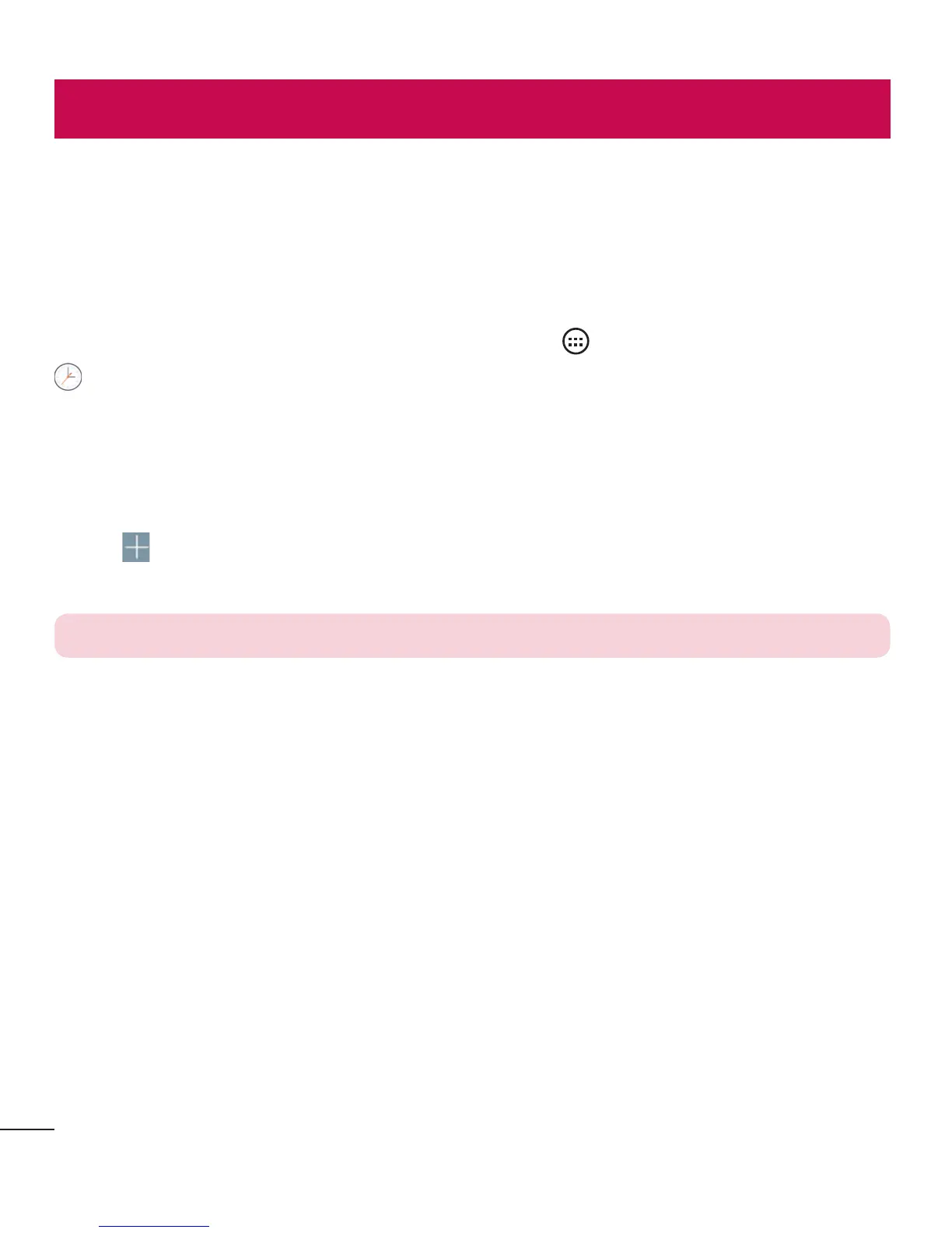 Use the Clock app to access the Alarms, Timer, World clock and Stopwatch functions.