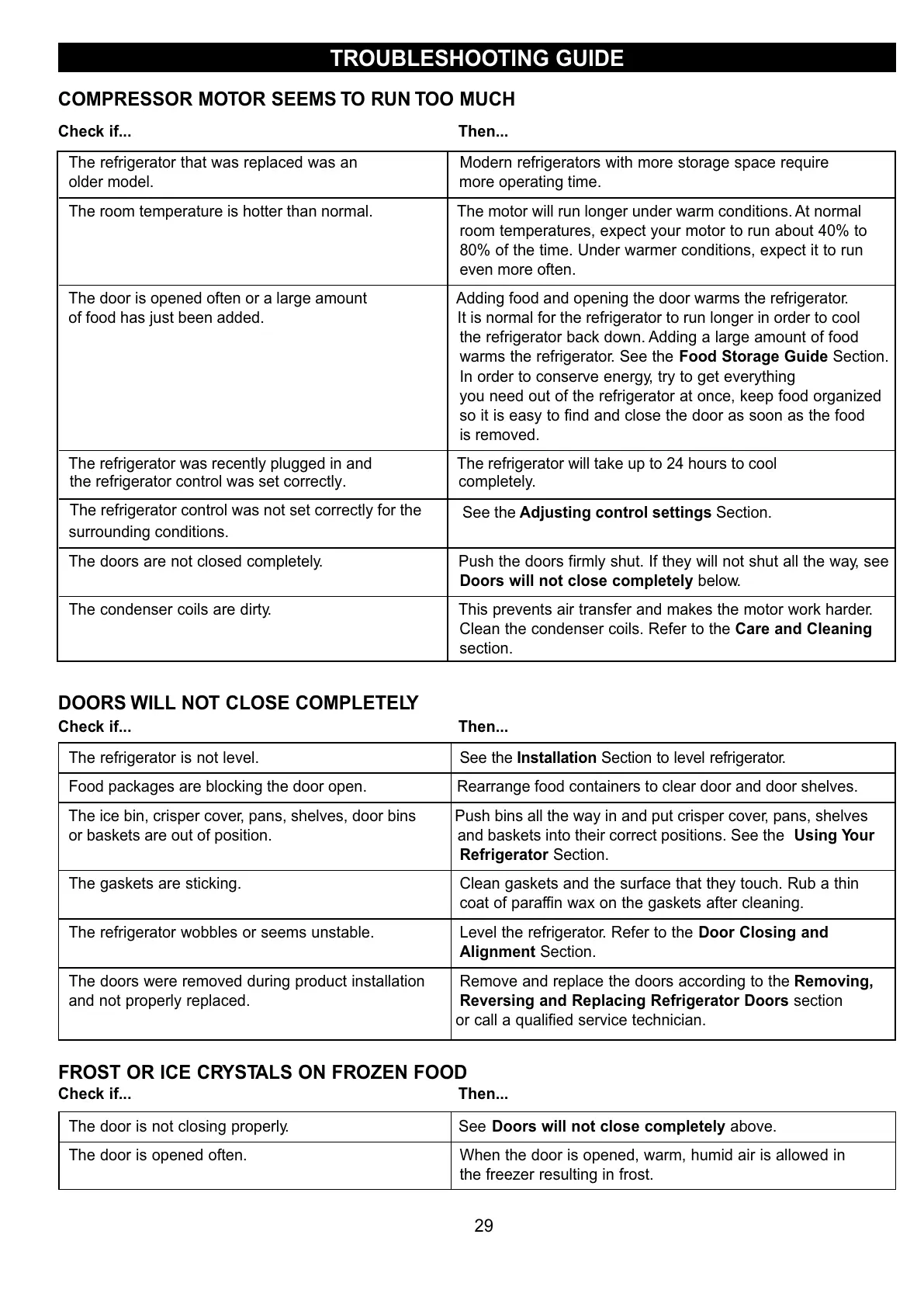 and not properly replaced. Reversing and Replacing Refrigerator Doors section