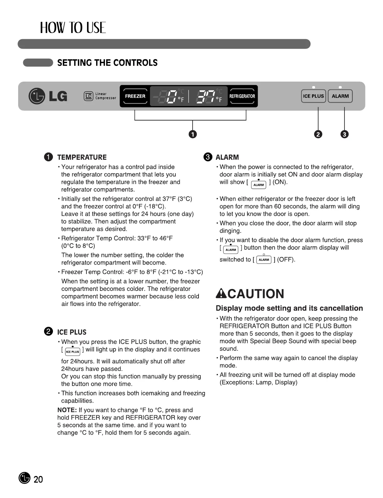 LG LFC21776 - HOW TO USE; SETTING THE CONTROLS