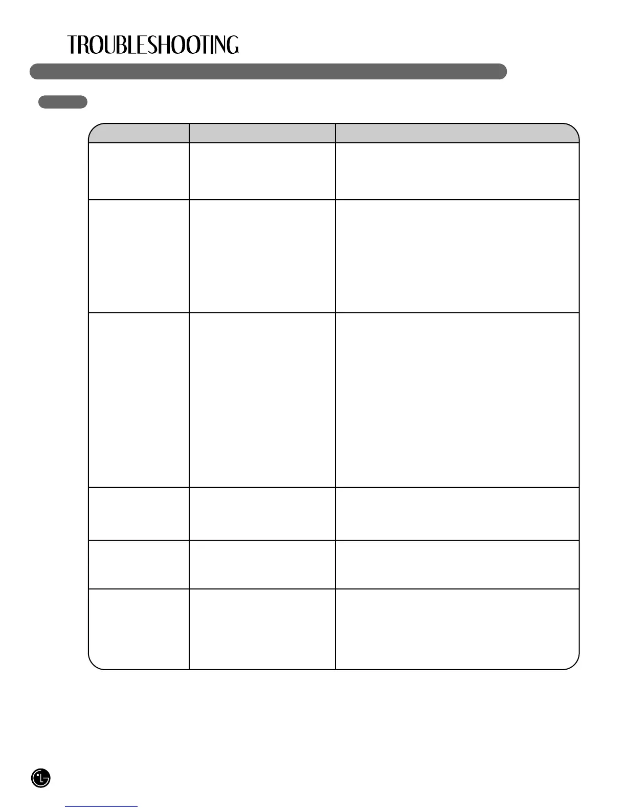 Problem Possible Causes Solutions