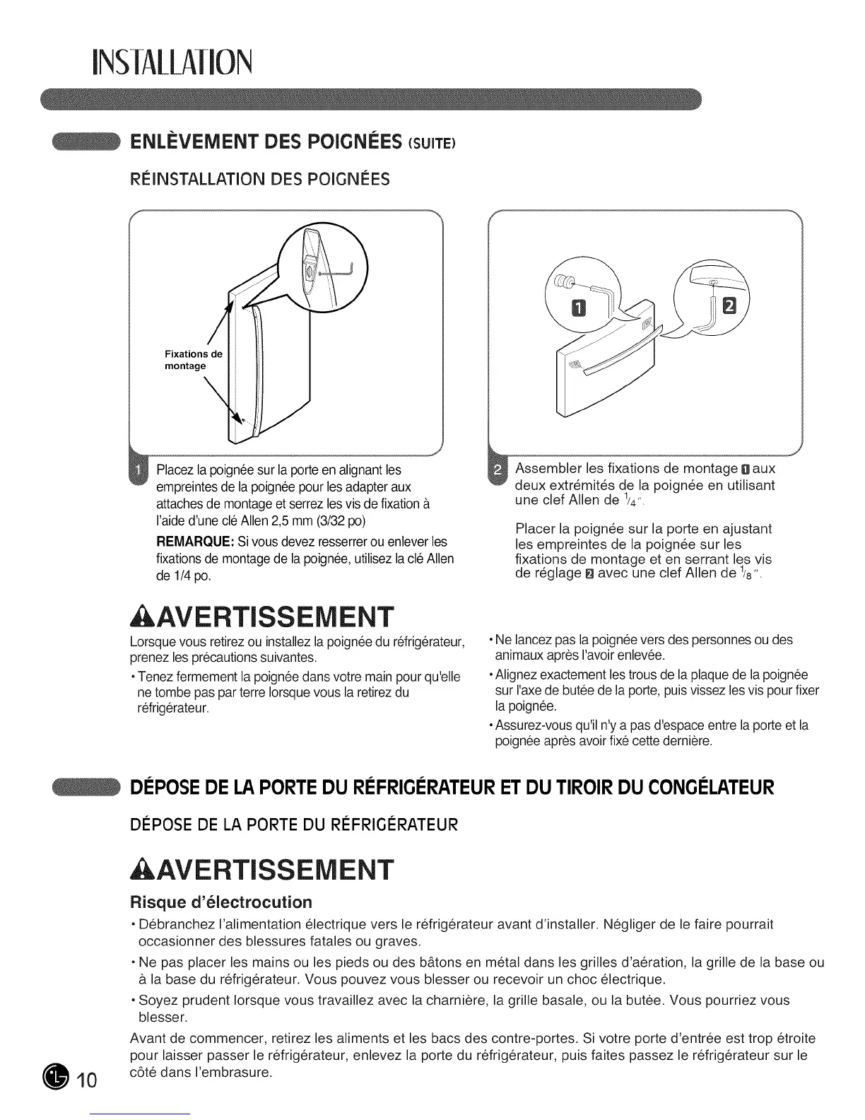 Lorsquevous retirez ou installez la poignee du refrig@ateur,