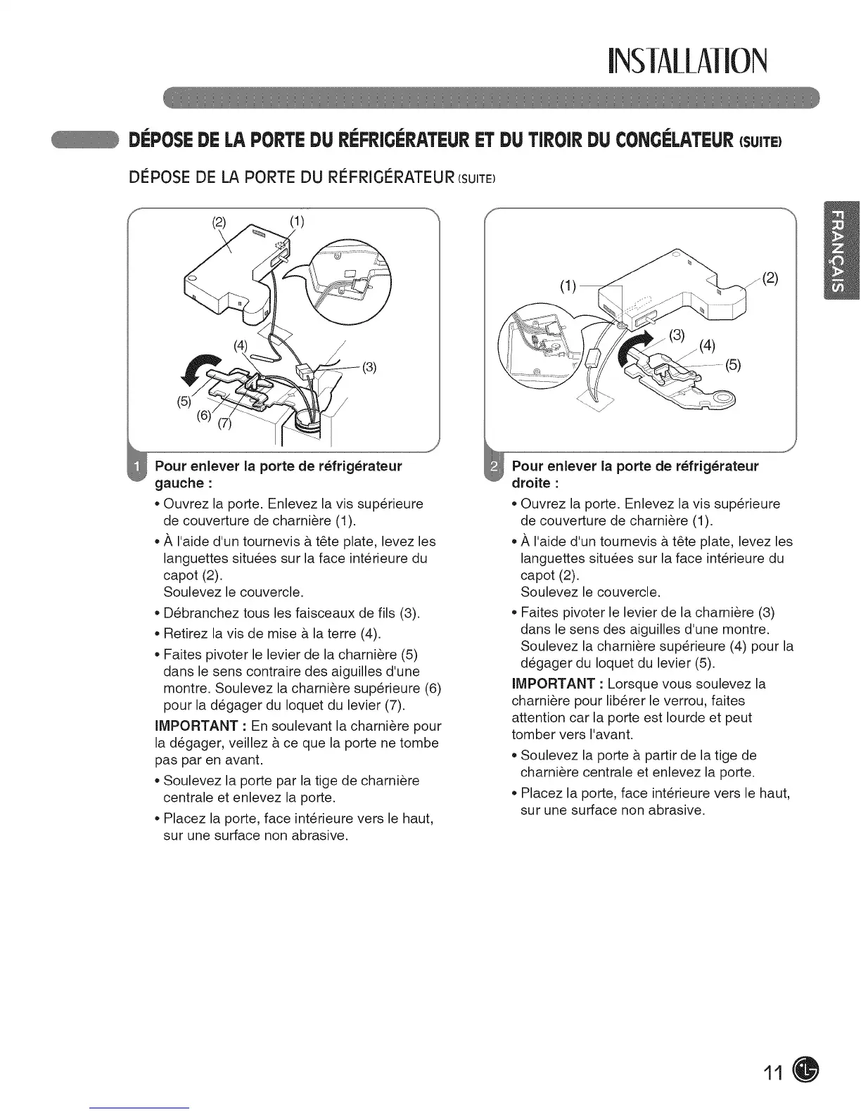 DEPOSEDE LA PORTEDU REFRiGI_RATI:URET DU TiROIRDU ¢ONGI_LATEUR(SUITE)
